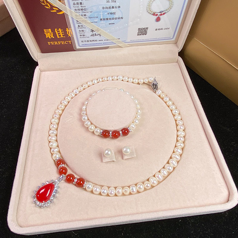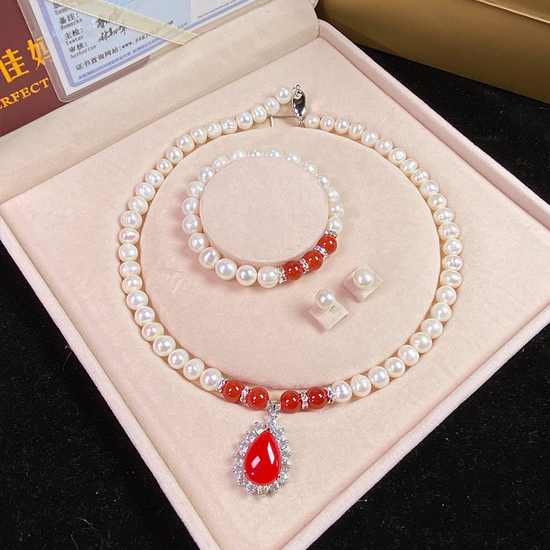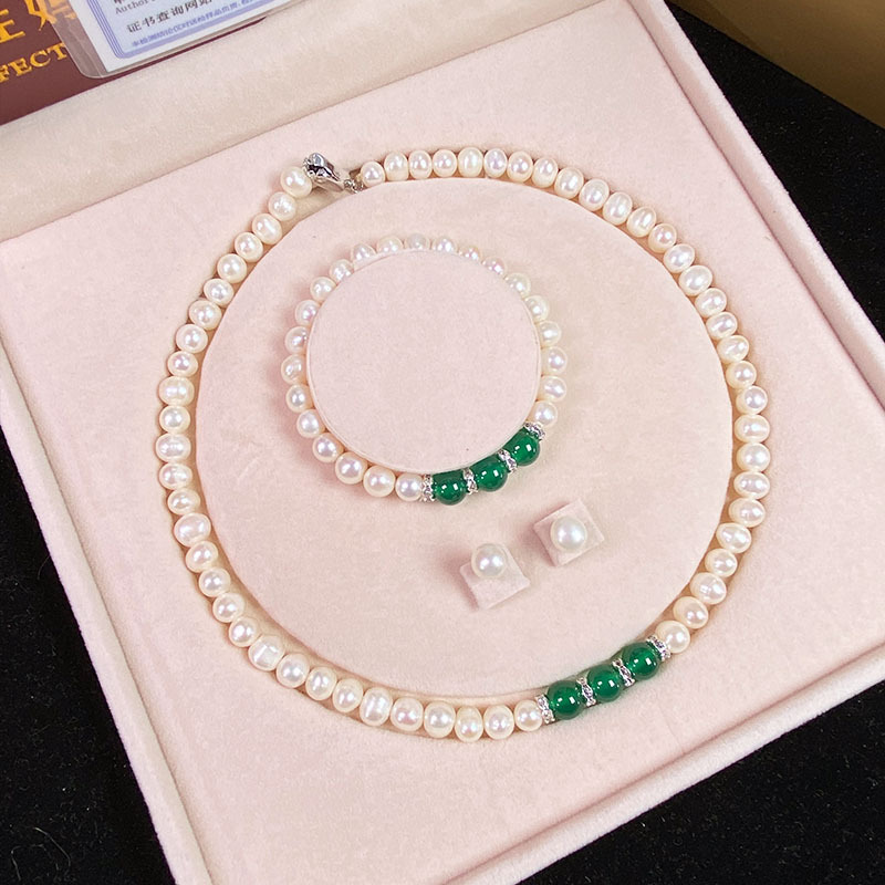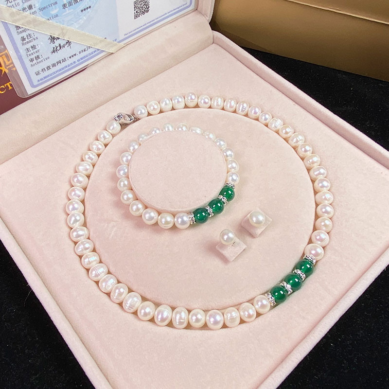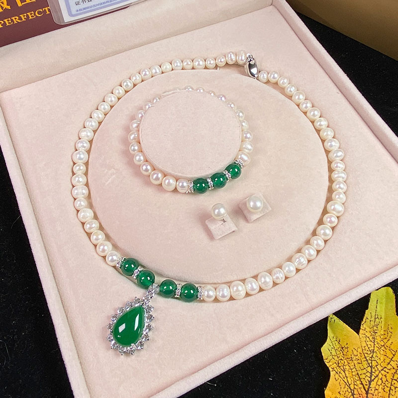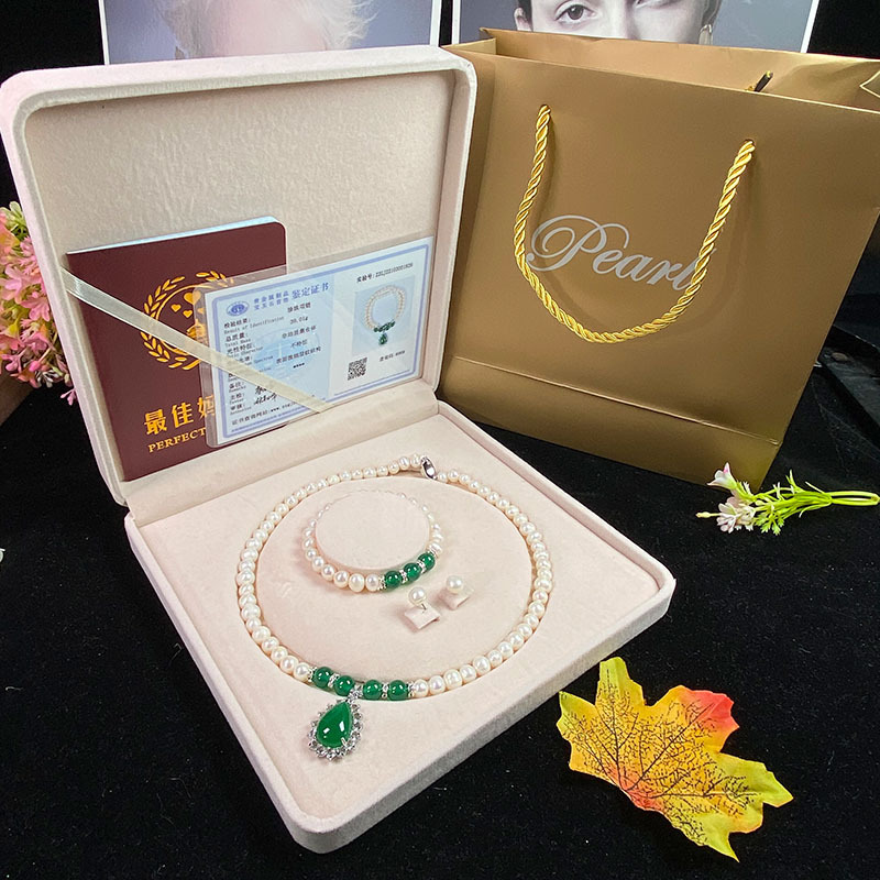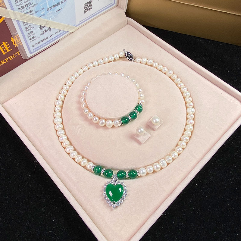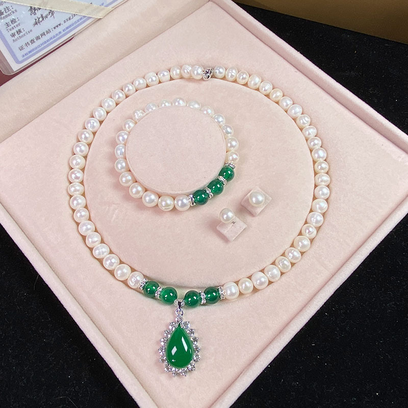 Vòng Cổ Ngọc Trai Nước Ngọt Tự Nhiên Chrysoprase Mặt Dây Chuyền Vòng Tay Ngọc Trai Trắng Gửi Mẹ Mẹ Chồng Ngày Của Mẹ Bán Buôn