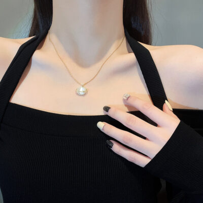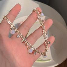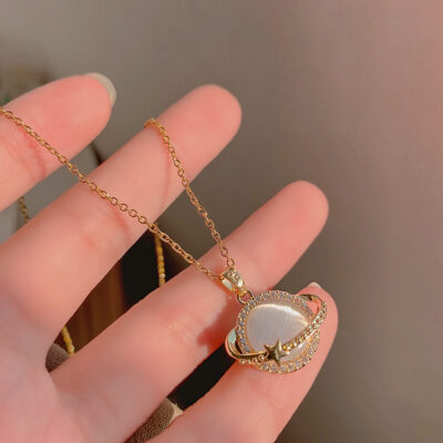 Vòng cổ Opal Planet Vòng cổ nữ Thiết kế thích hợp Advanced Sense Net Red Tính khí cá tính Dây chuyền xương đòn Vòng cổ thép titan đơn giản
