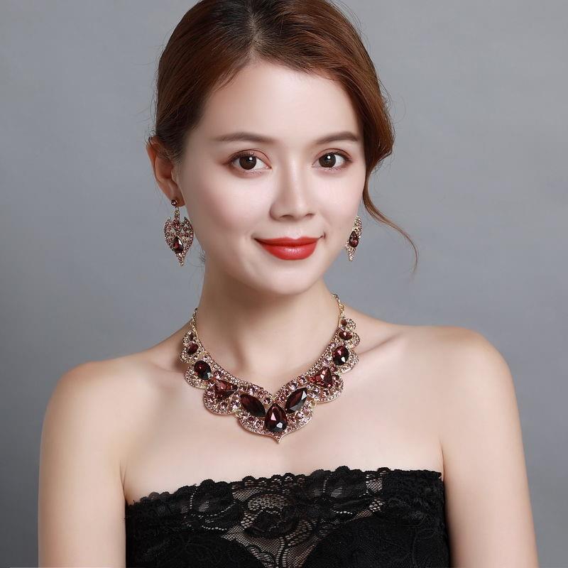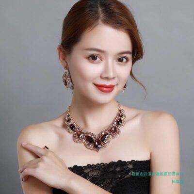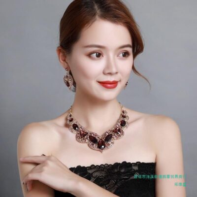 Vòng Cổ Phóng Đại Đầm Âu Mỹ Cao Cấp Phóng Đại Pha Lê Tím Đá Quý Ngắn Xương Đòn Bộ Bông Tai Vòng Cổ Đầm Nữ