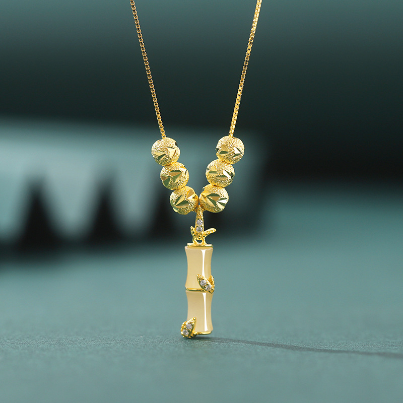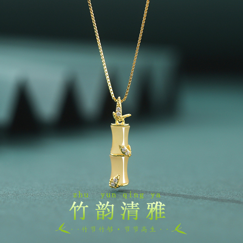 Vòng cổ tre mạ vàng bạc S925 nữ Hetian thiết kế mặt dây chuyền xương đòn chuỗi thích hợp trang sức thời trang Nhật Bản và Hàn Quốc
