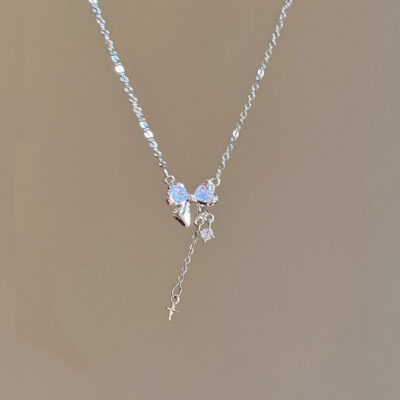 Vòng cổ tua rua nơ nữ mùa hè lưới Hàn Quốc ánh sáng đỏ sang trọng zircon ngôi sao chuỗi xương đòn thích hợp phụ nữ hợp thời trang mới