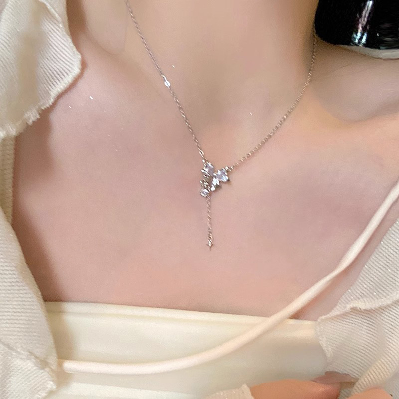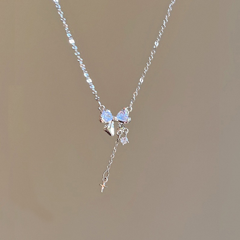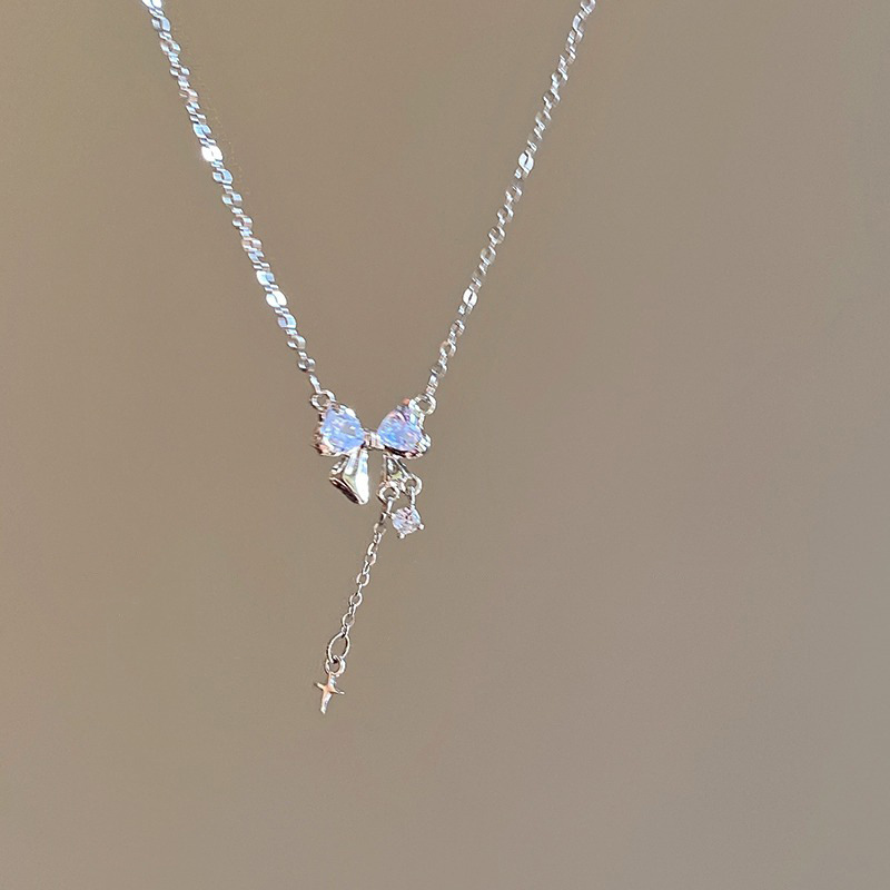 Vòng cổ tua rua nơ nữ mùa hè lưới Hàn Quốc ánh sáng đỏ sang trọng zircon ngôi sao chuỗi xương đòn thích hợp phụ nữ hợp thời trang mới