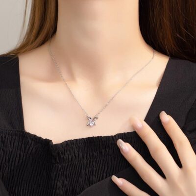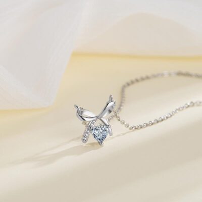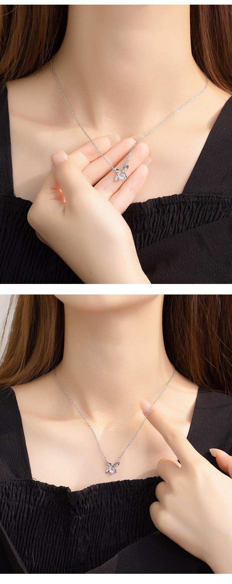 Vòng cổ zircon hình trái tim nơ mới của Qianhong nữ ngọt ngào ins ánh sáng thích hợp sang trọng thiết kế cao cấp dây chuyền xương đòn