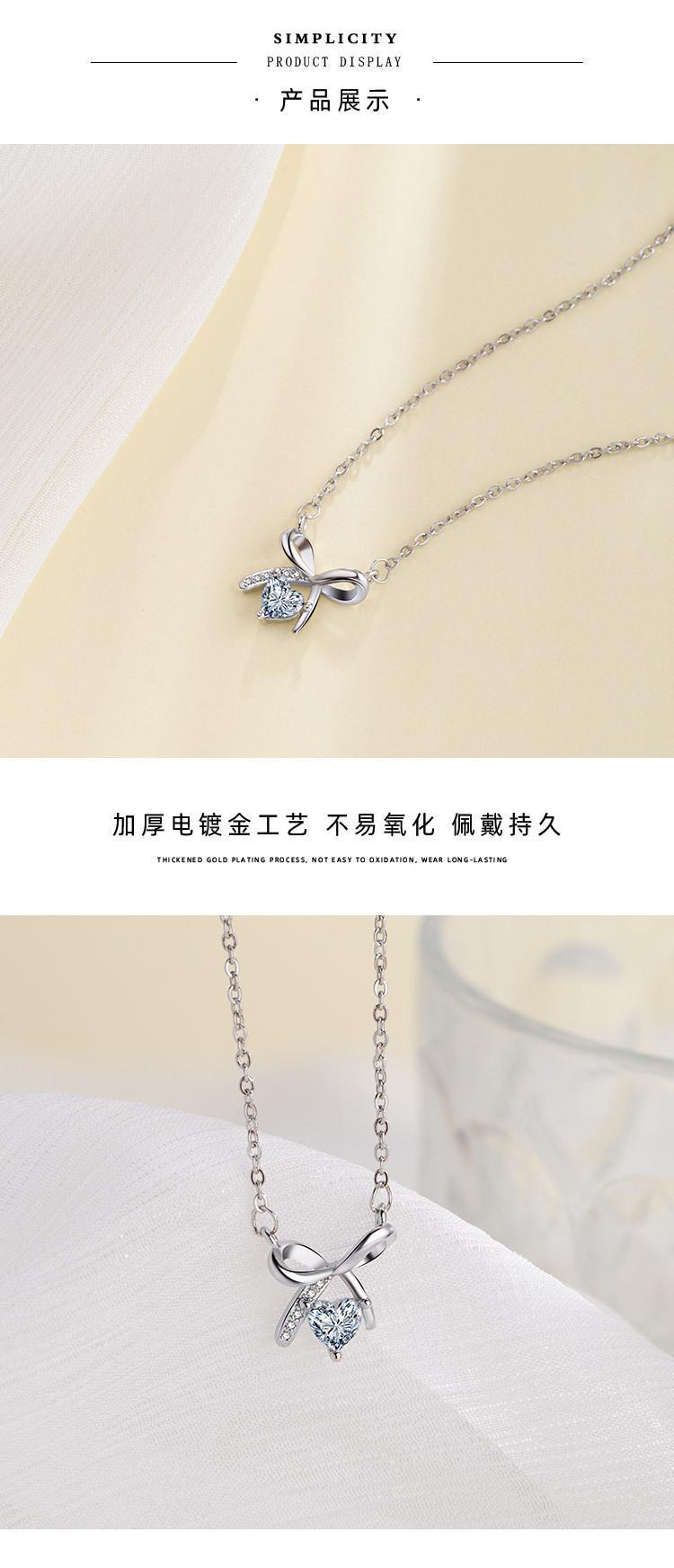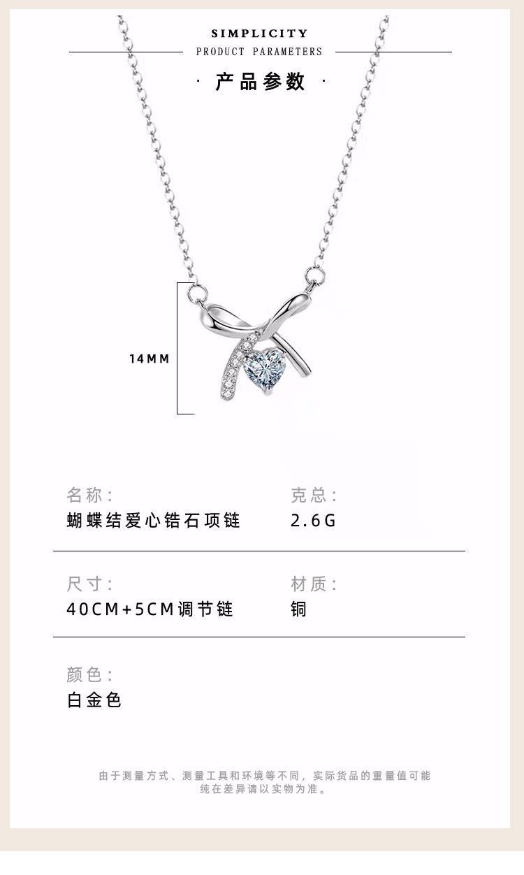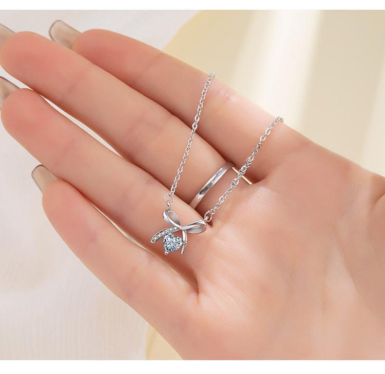 Vòng cổ zircon hình trái tim nơ mới của Qianhong nữ ngọt ngào ins ánh sáng thích hợp sang trọng thiết kế cao cấp dây chuyền xương đòn