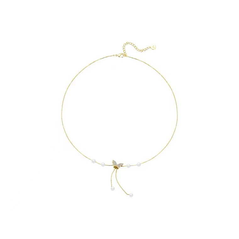 Vòng cổ Zircon ngọc trai hình bướm Thời trang nữ Thiết kế thích hợp chuỗi xương đòn Tính khí hợp thời trang Phụ kiện vòng cổ cao cấp đa năng