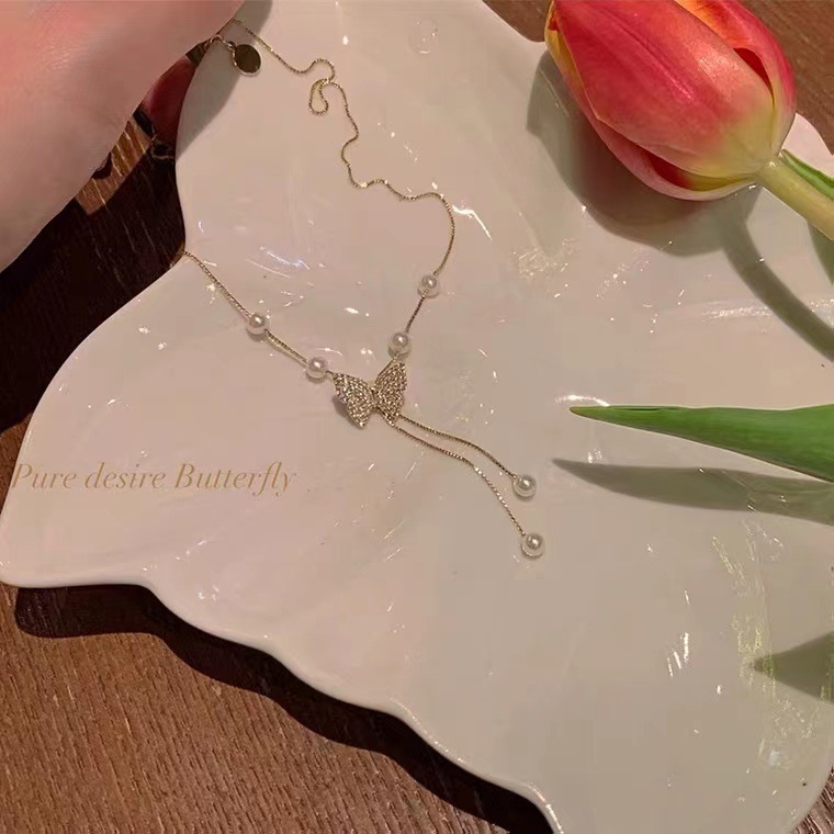 Vòng cổ Zircon ngọc trai hình bướm Thời trang nữ Thiết kế thích hợp chuỗi xương đòn Tính khí hợp thời trang Phụ kiện vòng cổ cao cấp đa năng
