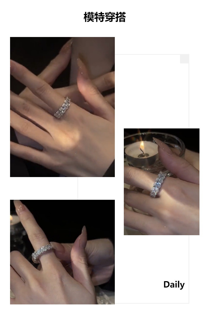 Vòng mở đầy đủ kim cương zircon khí chất phong cách lạnh phù hợp với tất cả các trận đấu nhẹ nhẫn sang trọng vi khảm thời trang tinh tế ngón trỏ nhẫn nhẫn