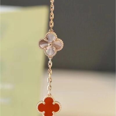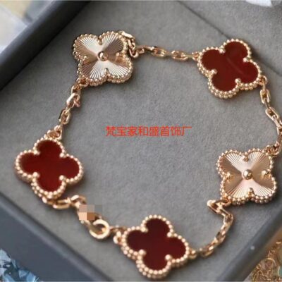 Vòng tay cỏ bốn lá năm hoa mới mạ bạc 18K vàng Vatican vòng tay quá trình CNC laser mã não đỏ hai mặt
