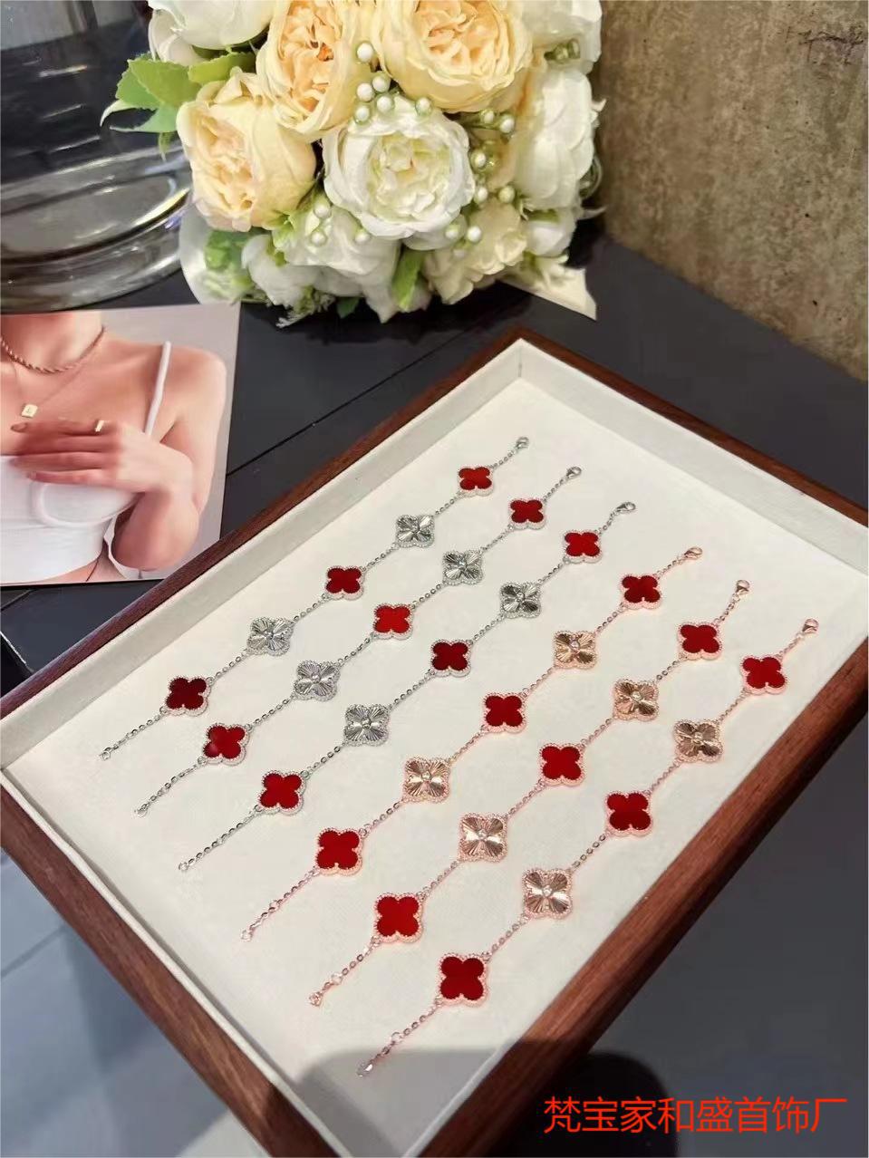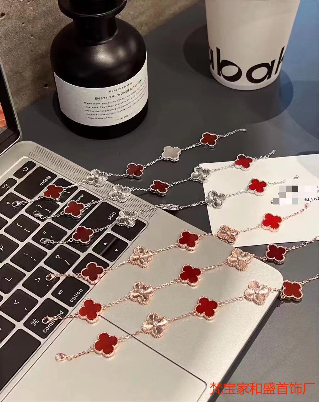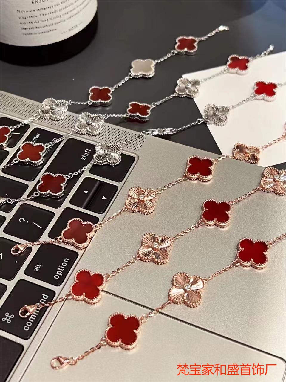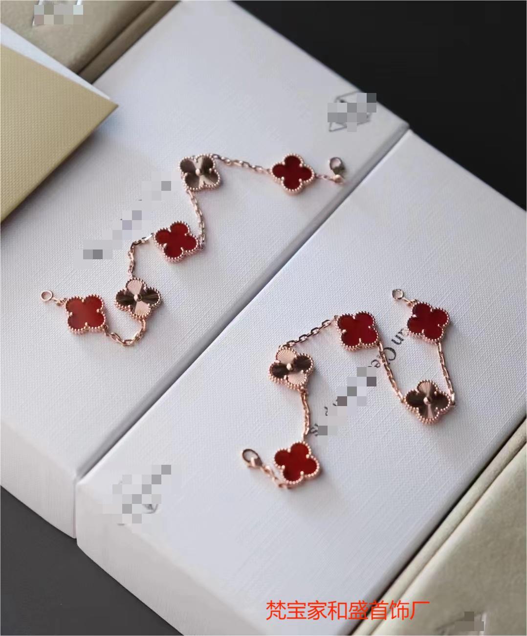 Vòng tay cỏ bốn lá năm hoa mới mạ bạc 18K vàng Vatican vòng tay quá trình CNC laser mã não đỏ hai mặt