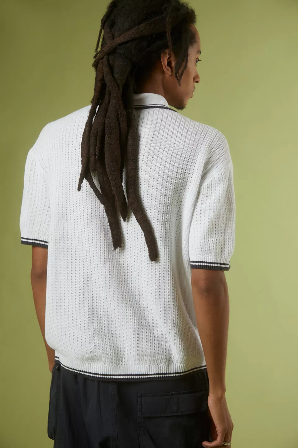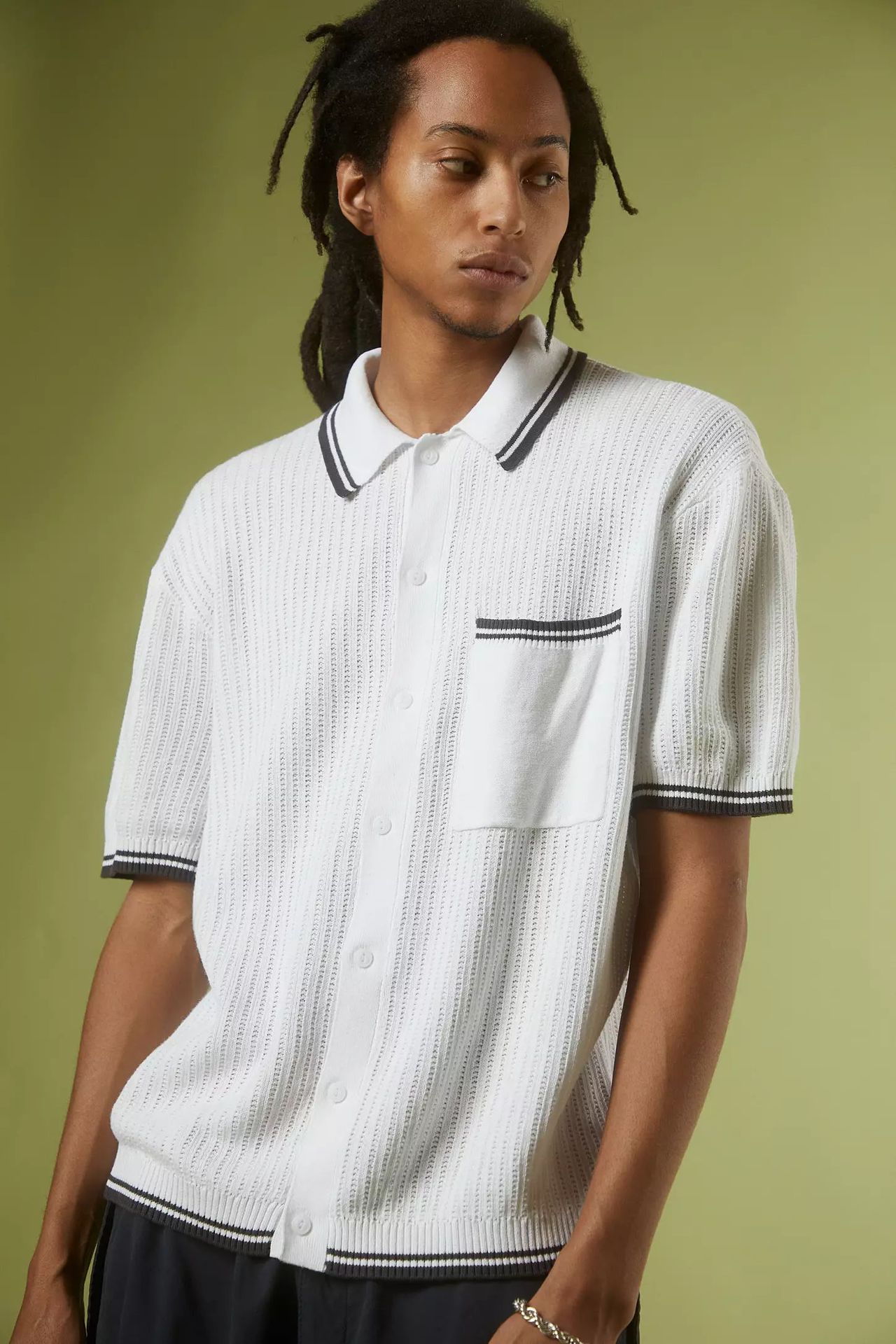 VSCOO2023 mùa hè chất lượng cao băng lụa rỗng cardigan ngắn tay áo len thời trang hợp thời trang nam cá tính