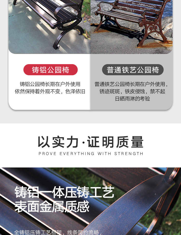 Vườn giải trí Ghế công viên nhôm đúc Ghế ngoài trời Ghế dài ngoài trời Sắt chống ăn mòn Ghế tựa lưng Ghế băng Ghế thư giãn Ghế thư giãn