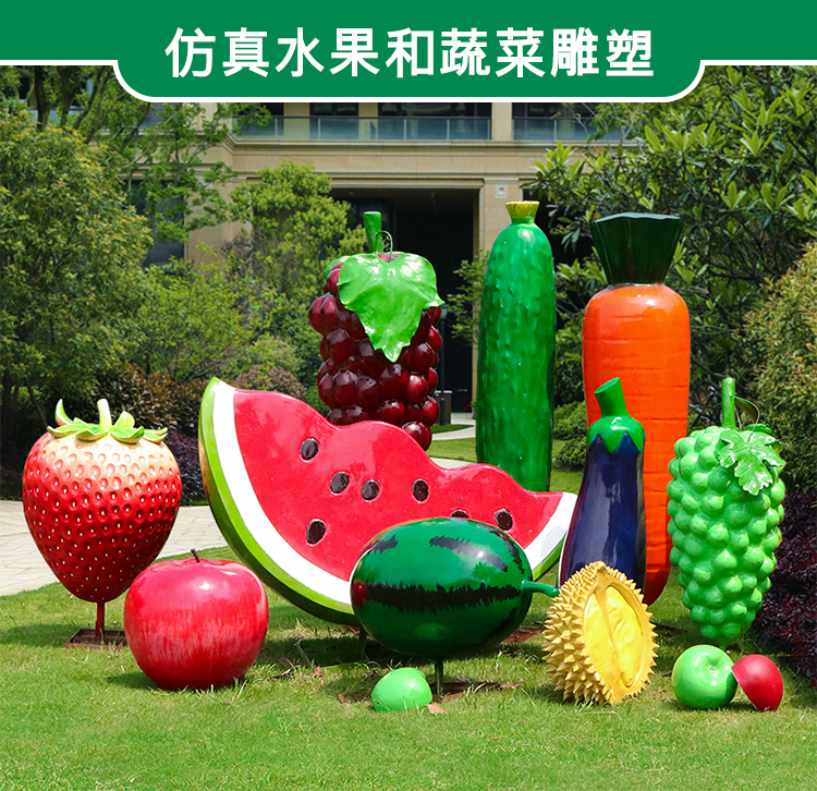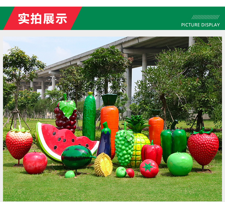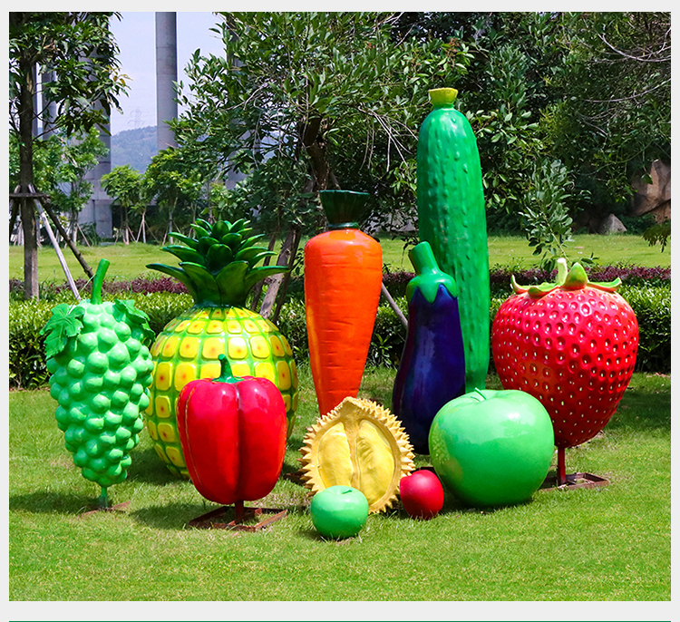 Vườn ngoài trời mô phỏng sợi thủy tinh gia cố nhựa rau và trái cây điêu khắc bí ngô dâu tây dưa hấu ngô nho trang trí đồ trang trí