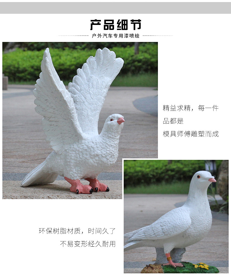 Vườn vi cảnh quan nhựa chim bồ câu trắng đồ trang trí mái biệt thự bãi cỏ động vật đẹp đồ trang trí phác thảo trang trí là lựa chọn lý tưởng cho không gian công cộng, sân vườn hoặc khu đô thị. Sản phẩm giúp nâng cao hình ảnh chuyên nghiệp và sạch đẹp cho môi trường sống.