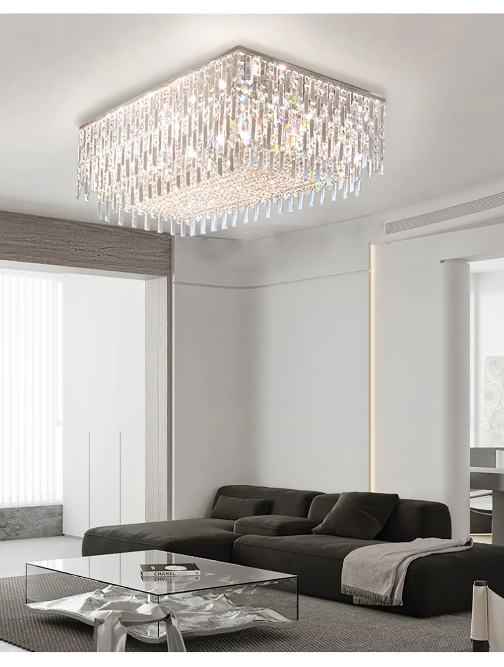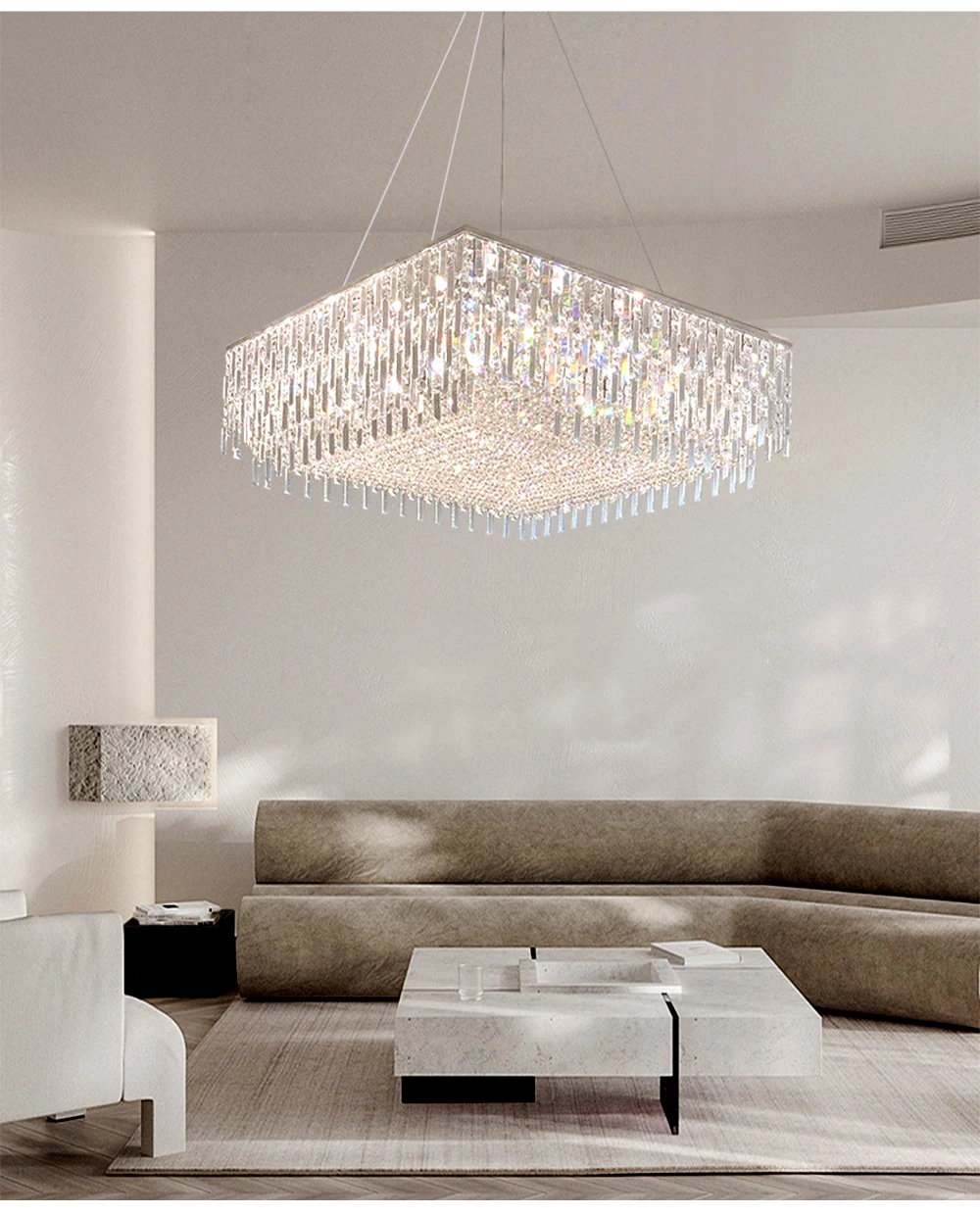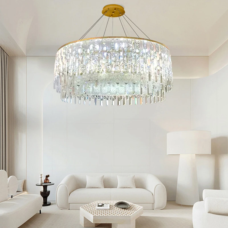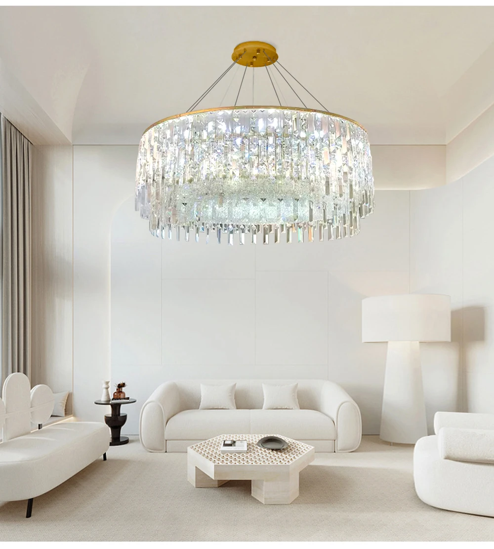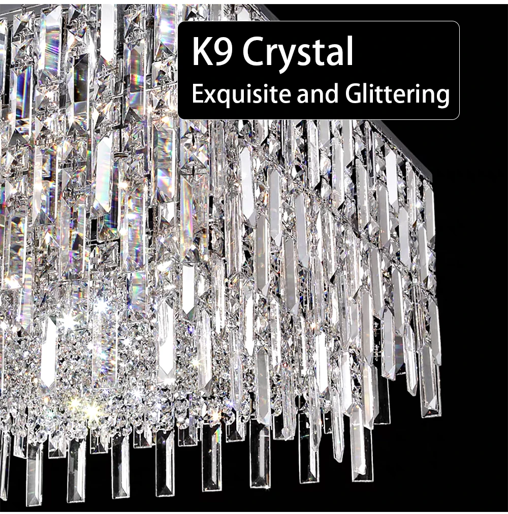 Big Square Crystal Chandeliers for Living Room Decor Golden Luxury Hanging Lamps for Ceiling Home Lighting Fixture LED Lustre