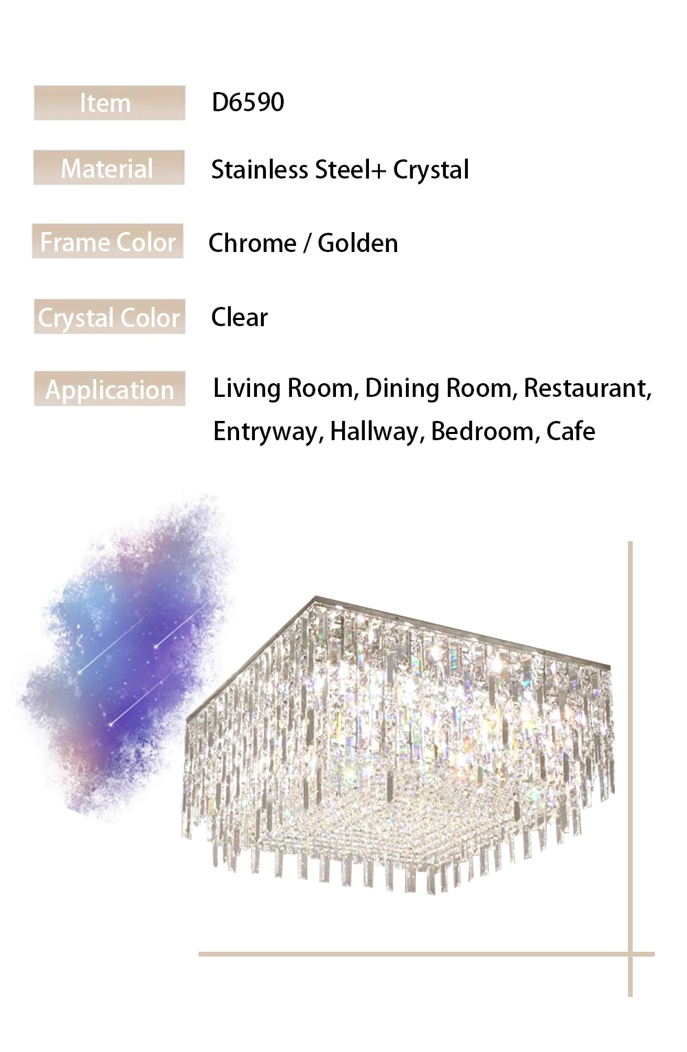 Application : Living Room, Bedroom, Kitchen island, Dining room, Hallway, Entryway, Restaurant, Cafe, Staircase