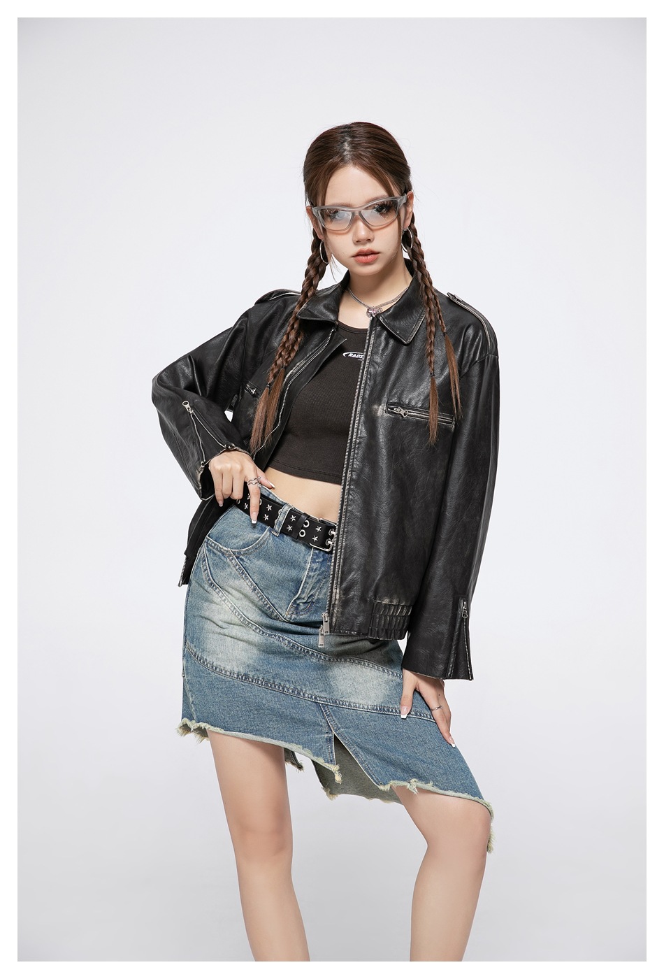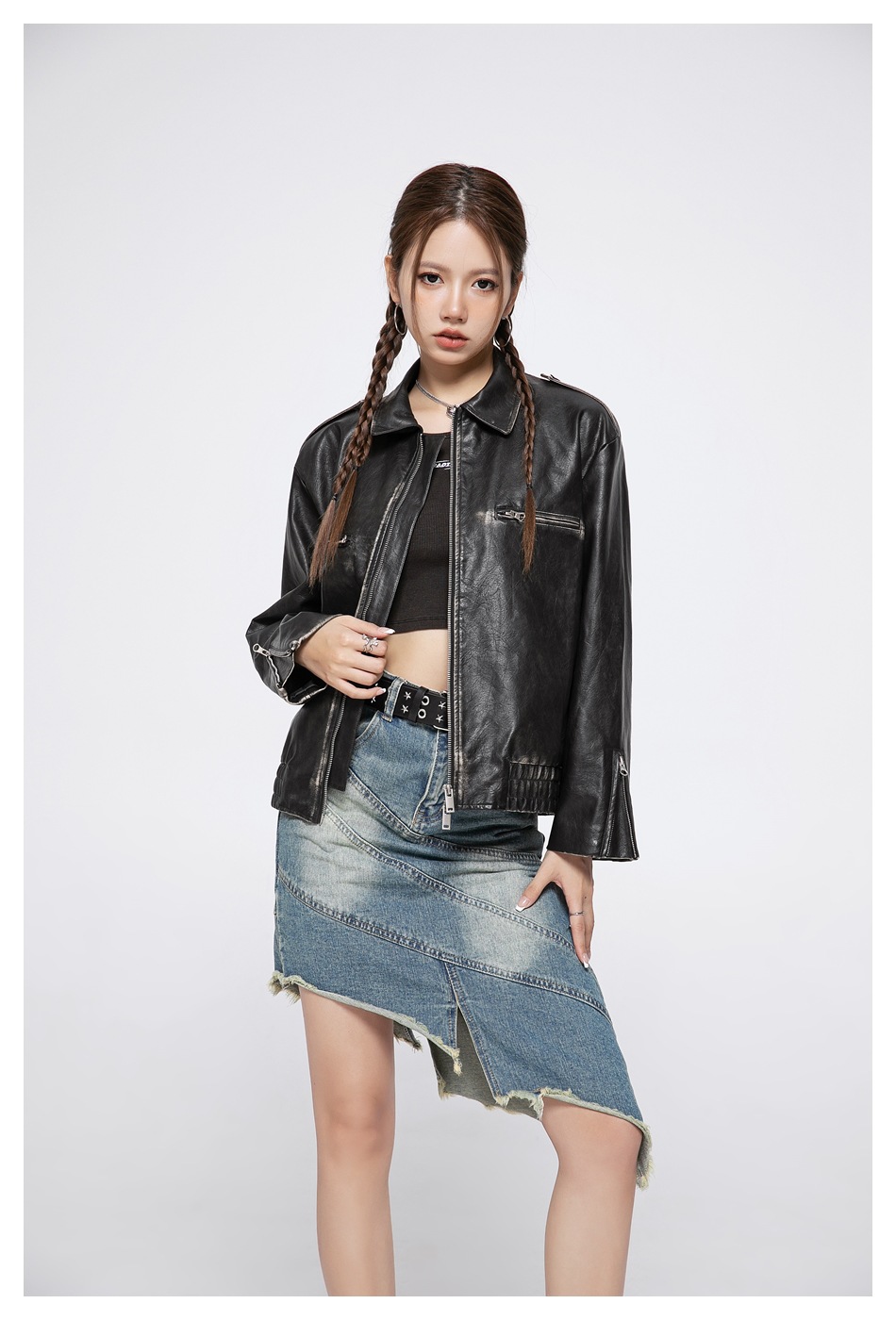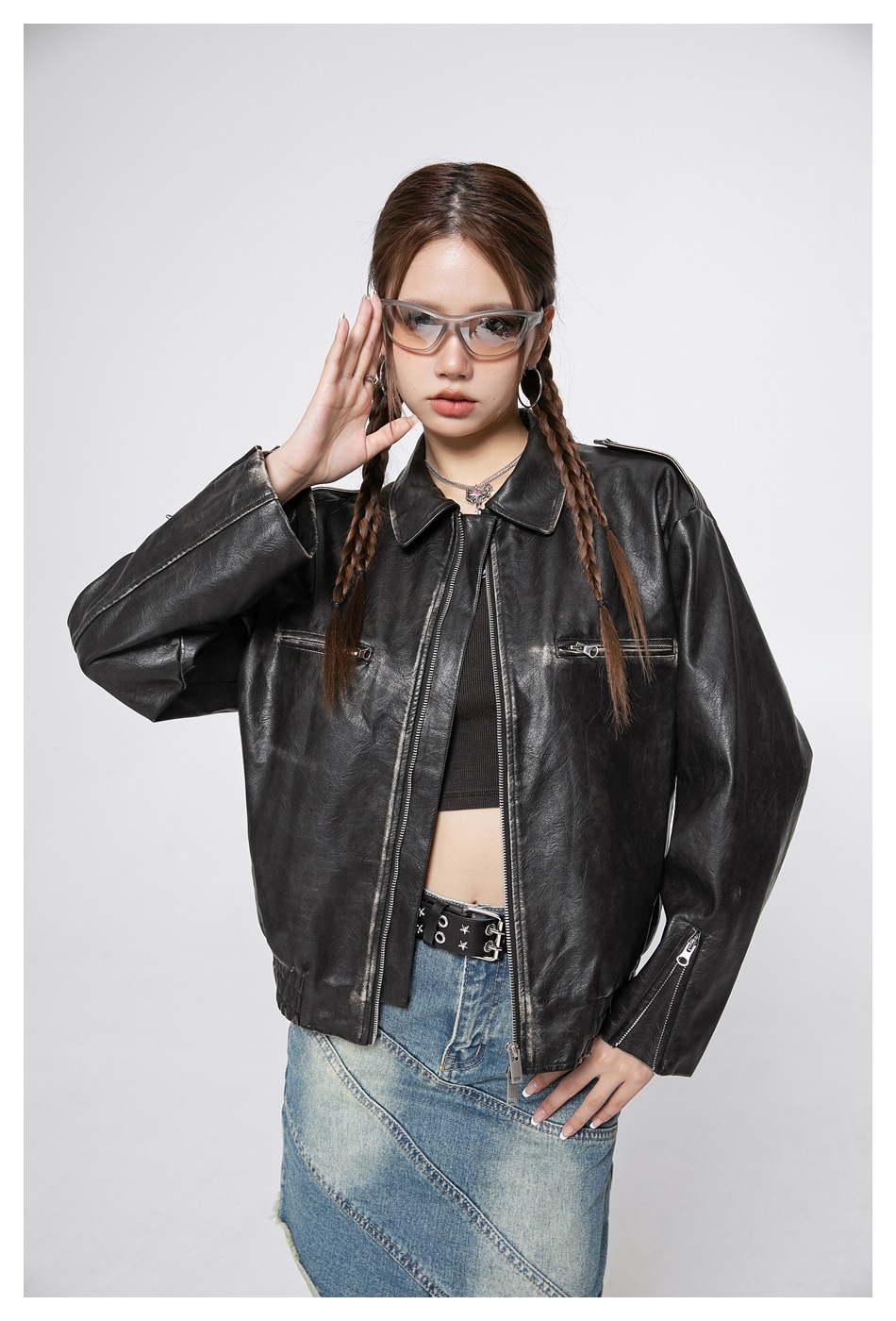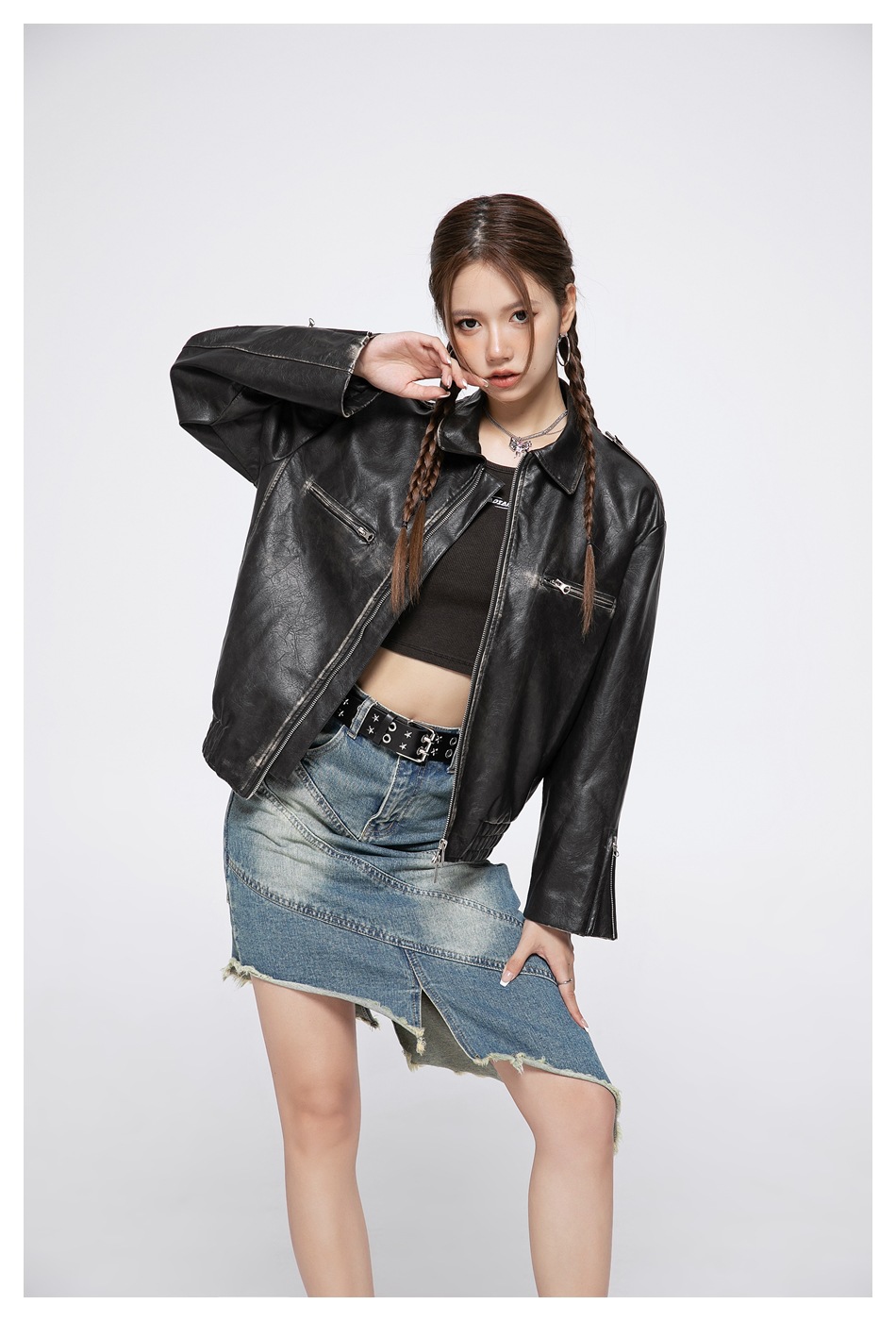 VVSMARS Punk Hot Girl Retro Cũ Áo Khoác Da PU Bé Gái Thích Hợp Rock Xe Máy Áo Khoác Da 1023