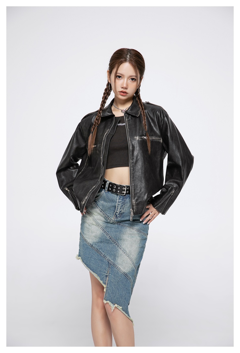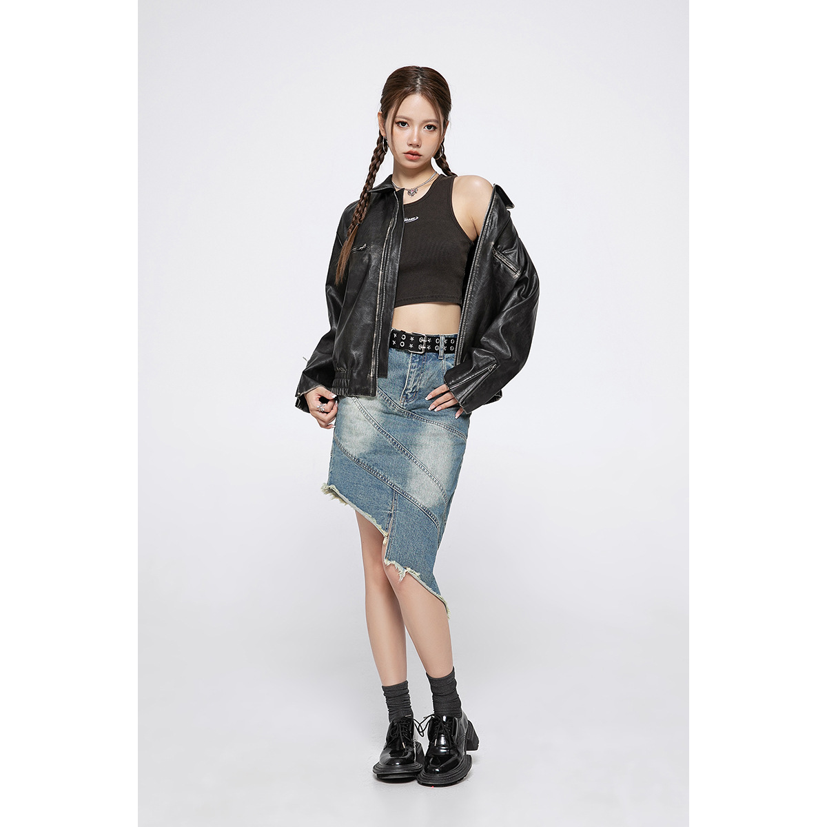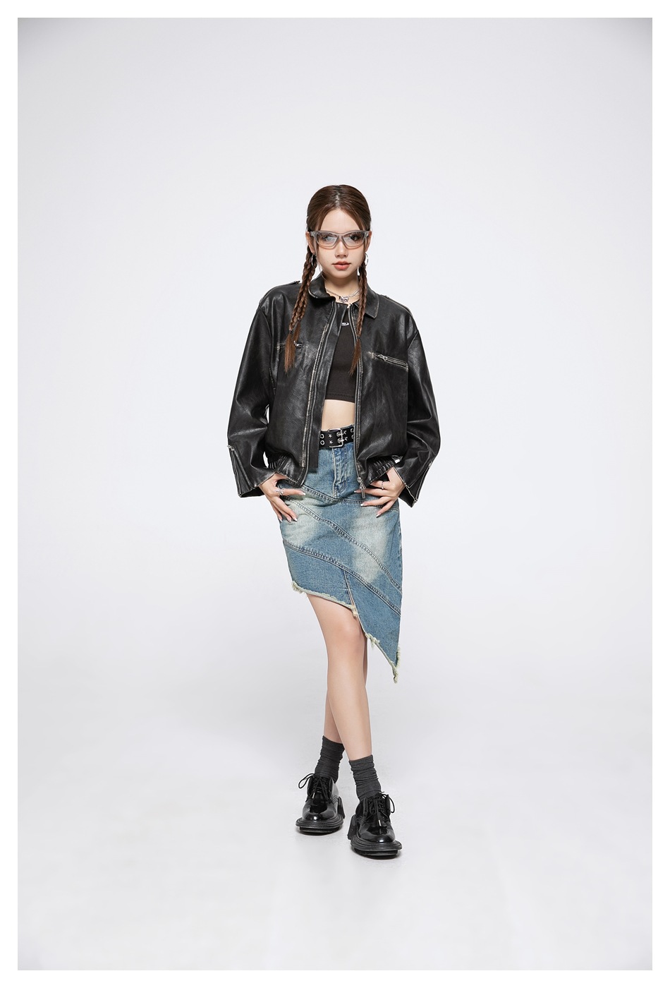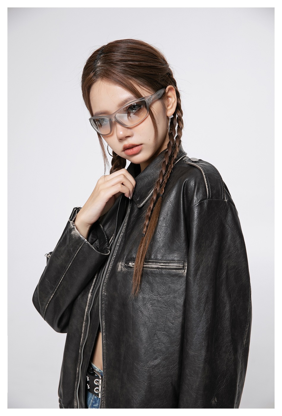 VVSMARS Punk Hot Girl Retro Cũ Áo Khoác Da PU Bé Gái Thích Hợp Rock Xe Máy Áo Khoác Da 1023