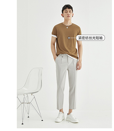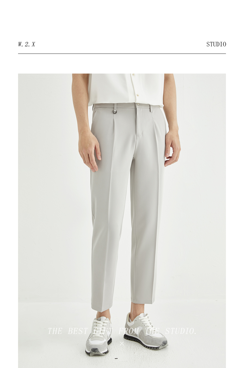 w2x mùa hè mỏng quần âu nam quần chín điểm quần tây nam quần tây nam đẹp trai xếp nếp quần âu nhỏ băng lụa quần nam 9 điểm