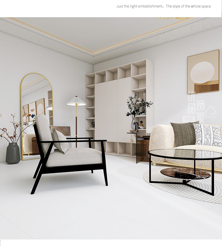 Wabi-sabi phong cách Nhật Bản màu trắng sữa ánh sáng dịu nhẹ gạch lát sàn phòng tắm nhà bếp gạch ốp tường phòng khách họa tiết gạch trơn 600×1200