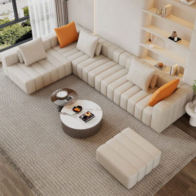 Wabi Sabi Sofa Phong Cách Phòng Khách Đơn Giản Hiện Đại Màu Kem Phong Cách Ý Tối Giản Phím Đàn Piano Da Thẳng Sofa Nghệ Thuật