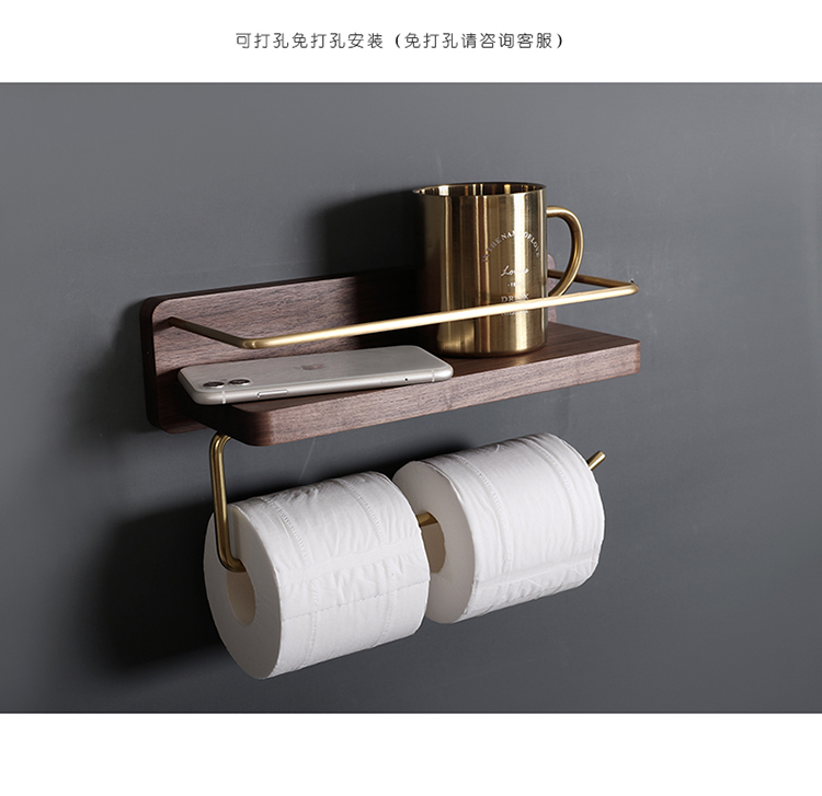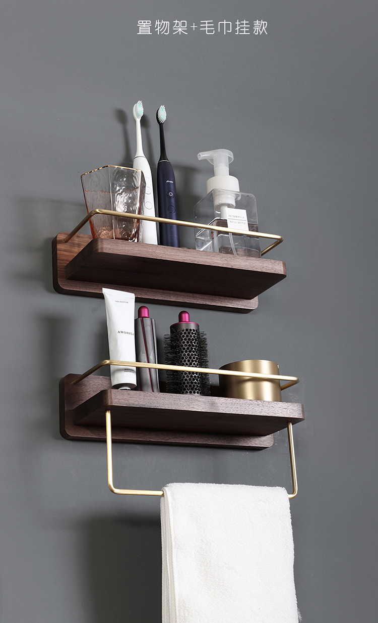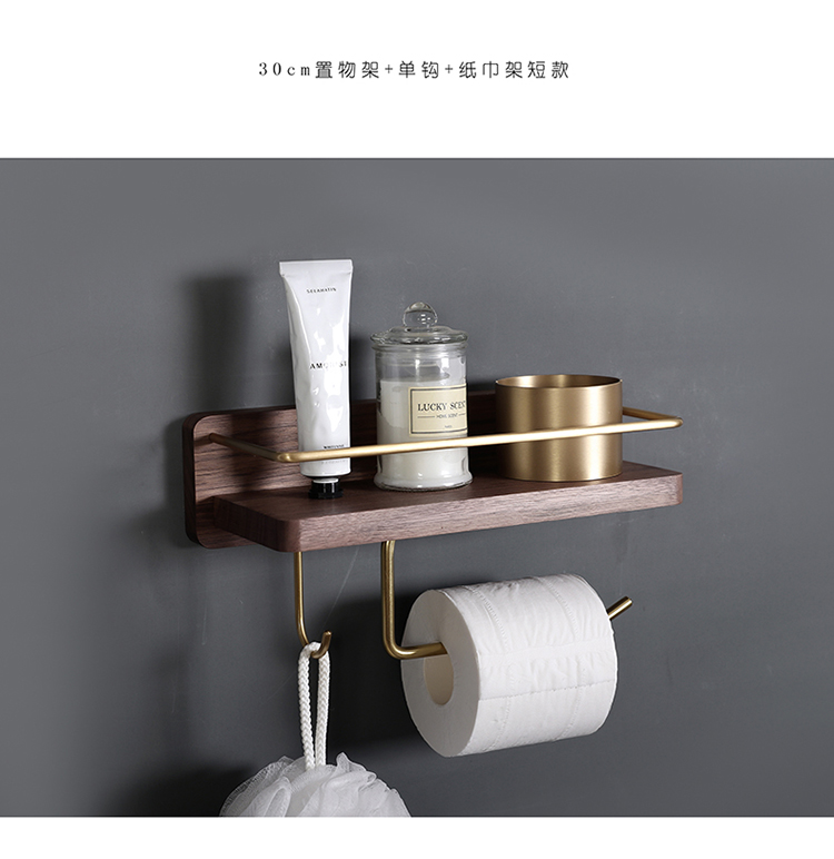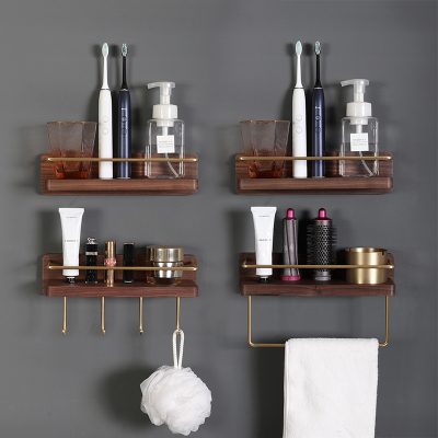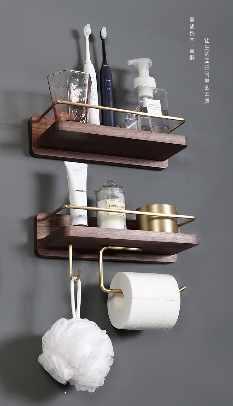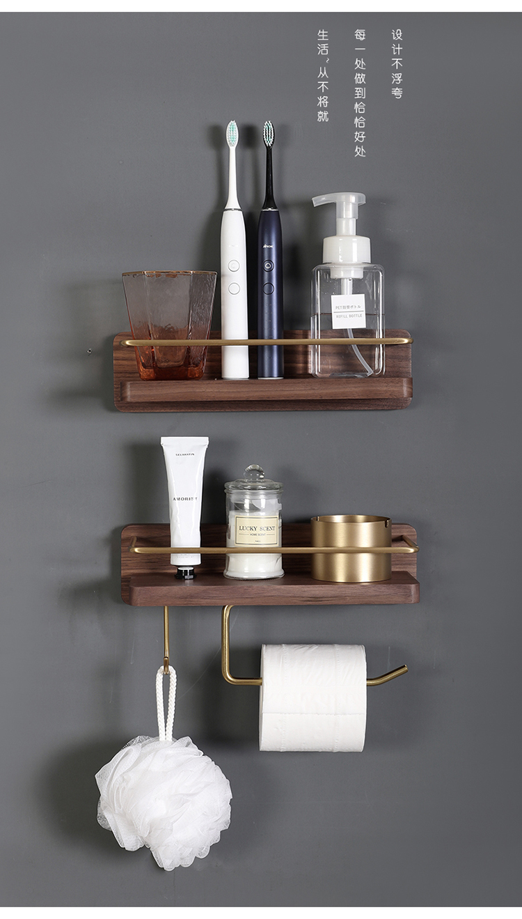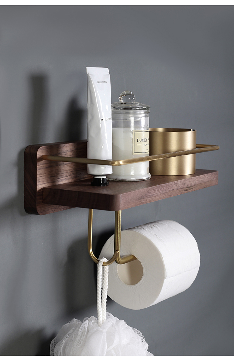 Walnut Brass Phòng tắm Treo tường Kệ Khăn Treo Mỹ phẩm Lưu trữ Khăn giấy Giá đỡ Khăn Thanh Bàn chải đánh răng Giá đỡ cốc.
