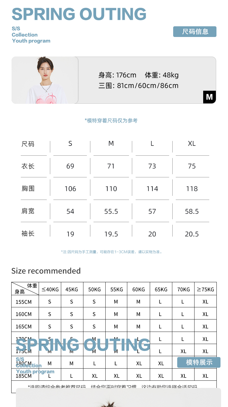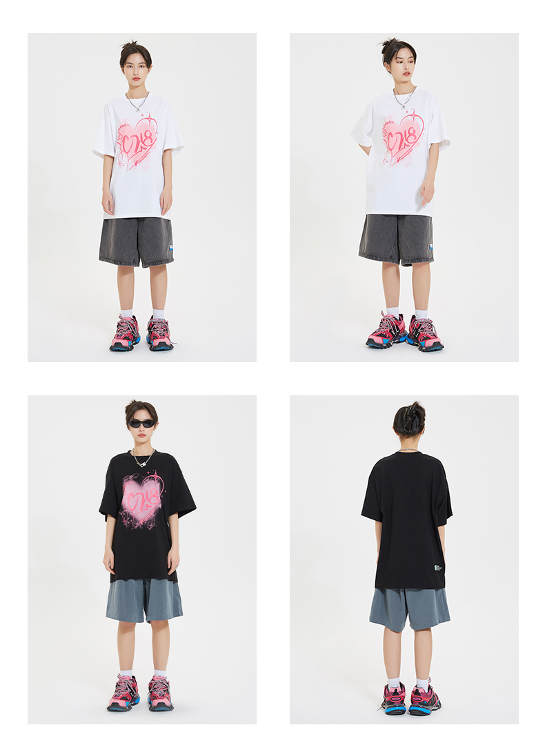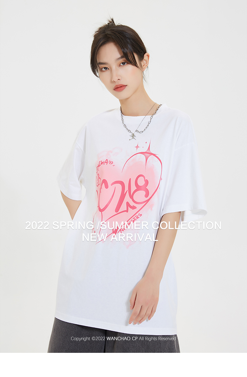 WANCHAO CP mùa hè 2022 khói mới tình yêu áo thun ngắn tay nữ áo thun nửa tay áo trong
