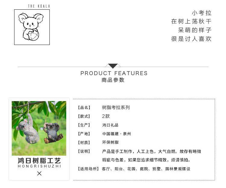 Sản phẩm nổi bật với các đặc điểm: Wenyang Vườn Sân Vườn Cảnh Quan Sáng Tạo Đồ Trang Trí Dễ Thương Mô Phỏng Koala Nhựa Động Vật Điêu Khắc Thủ Công Trang Trí Quý khách có nhu cầu mua Đồ trang trí sân vườn vui lòng liên hệ với chúng tôi để được tư vấn hỗ trợ. Dịch vụ mua hàng Trung Quốc sẽ hỗ trợ quý khách mua hàng từ nhà cung cấp và giao tới tận tay quý khách hàng..Mã sản phẩm: 00370628 Nguồn: Không Màu sắc: Kiểu 1/ Kiểu 2/ Gấu trúc/ Dây buộc Gấu trúc đỏ/ Dây buộc Gấu trúc đỏ Chất liệu: Gia công nhựa Tùy chỉnh: Không Phong cách: Mục vụ Quà tặng: Không