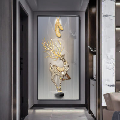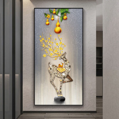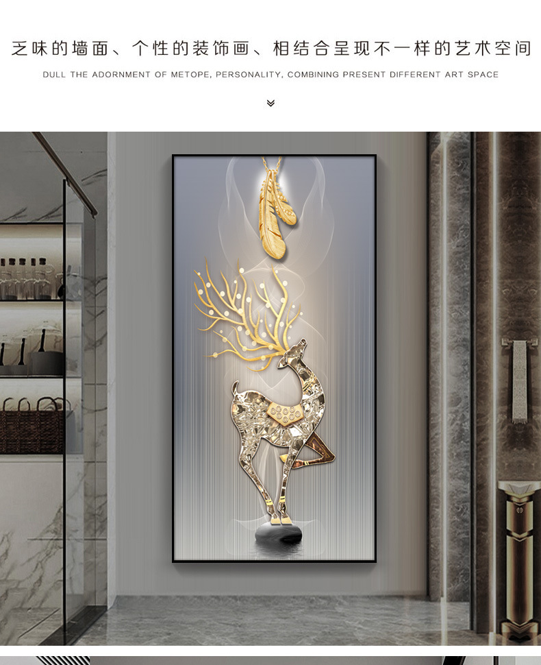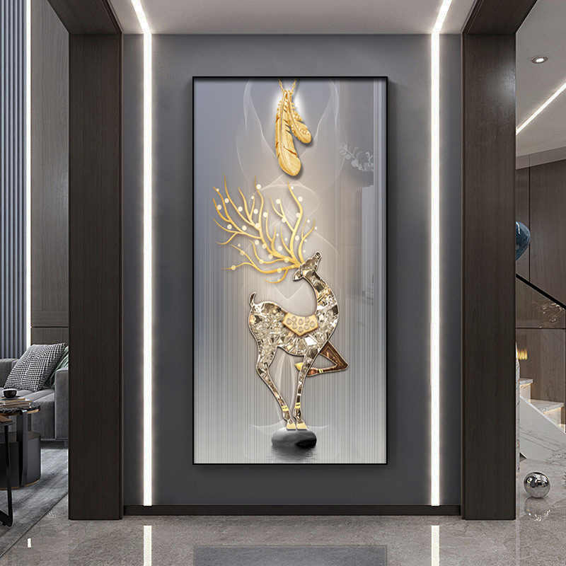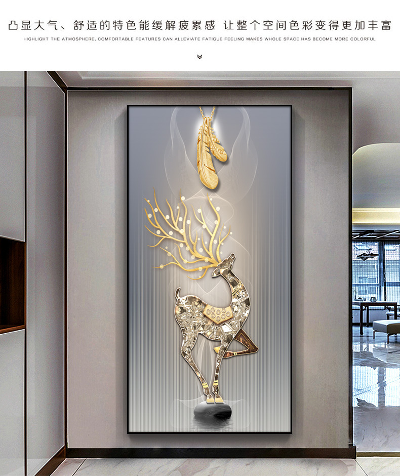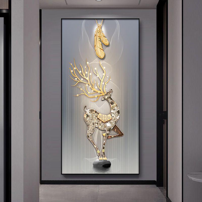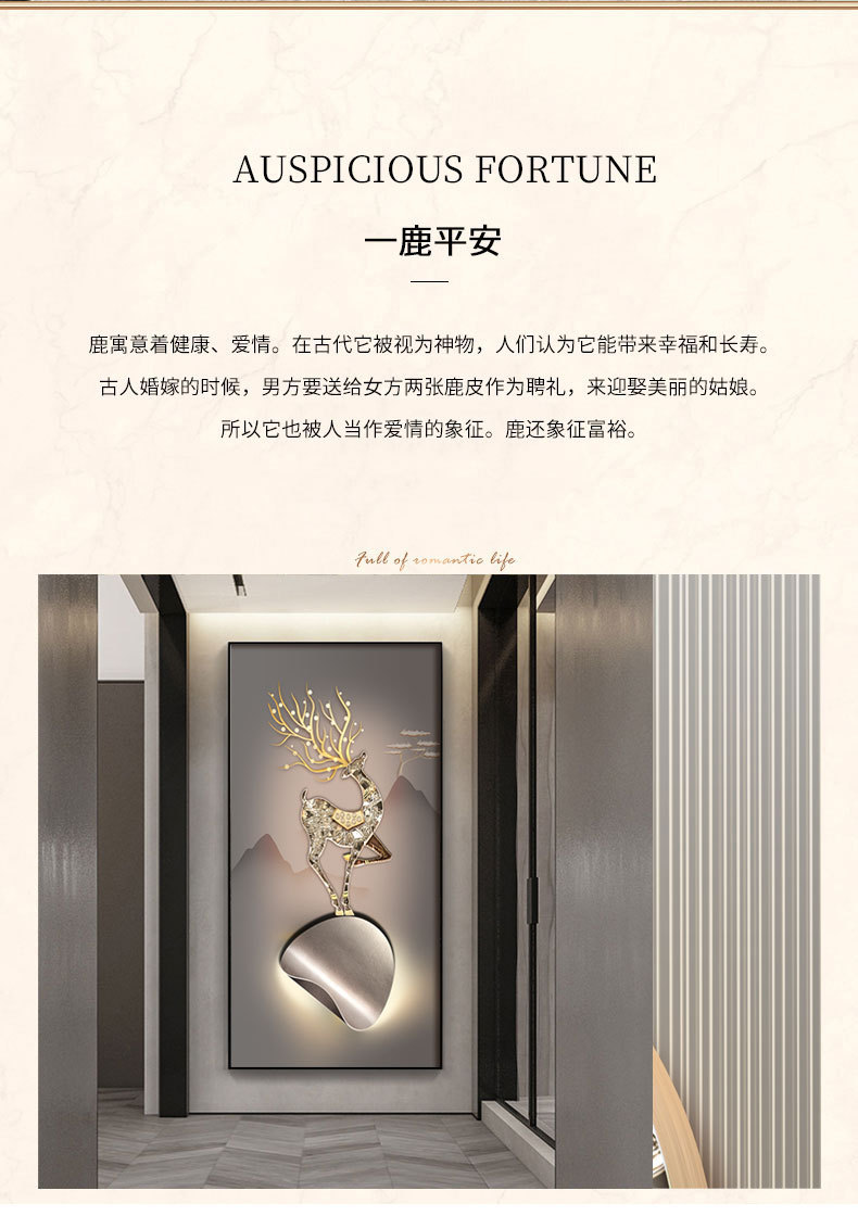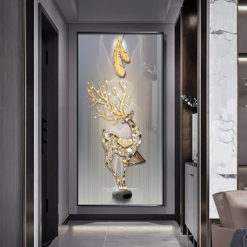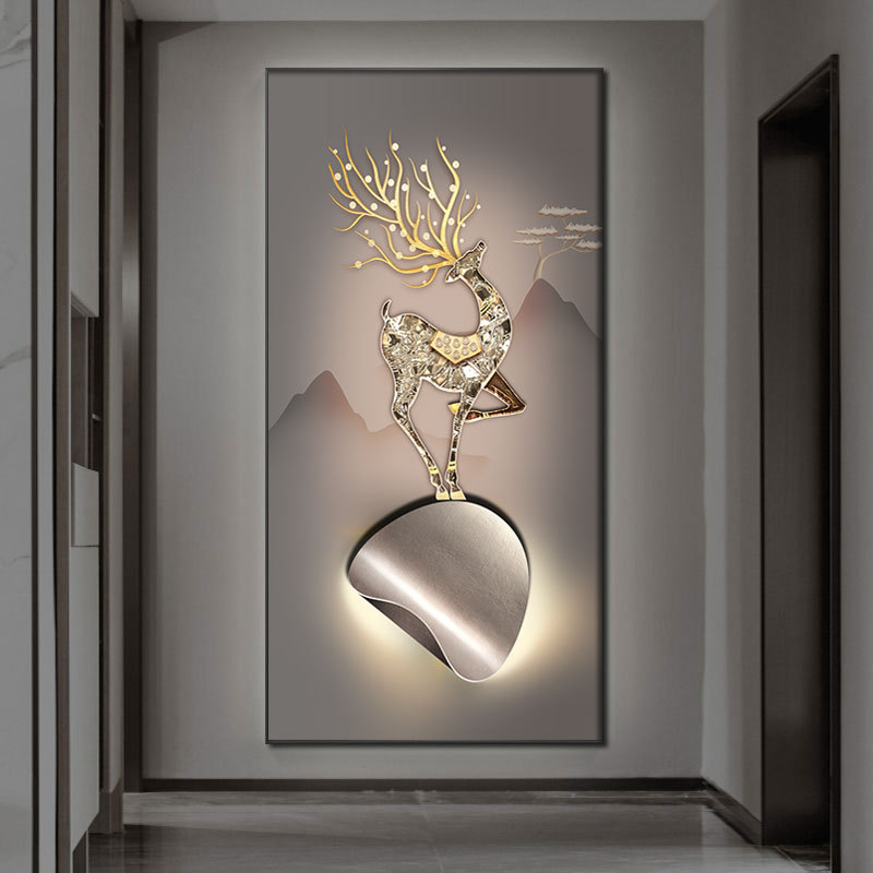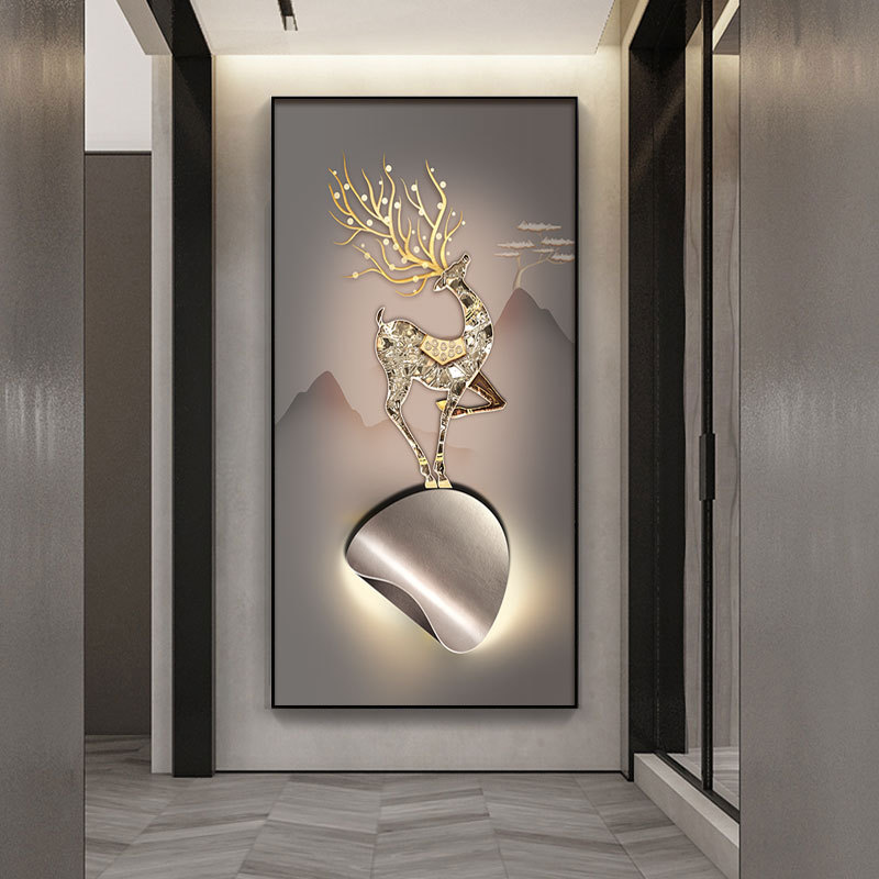 Wufu Linmen ánh sáng sang trọng lối vào hiên trang trí tranh phòng khách hành lang lối đi treo tranh ngụ ý tốt hươu chiếu sáng nền tranh