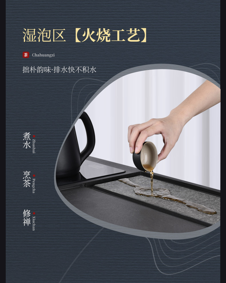 Wujinshi Khay Trà Nguyên Khối Ấm Siêu Tốc Thông Minh Tích Hợp Ánh Sáng Sang Trọng Đơn Giản Hộ Gia Đình Kung Fu Trà Trung Quốc Bộ Bàn Trà