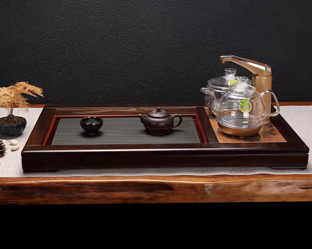 Wujinshi trà tấm toàn bộ hoàn toàn tự động một với bếp từ nhà gỗ mun văn phòng bộ bàn trà gỗ rắn