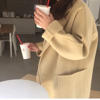 Xả giá đặc biệt áo khoác len ngắn nhỏ màu vàng nhạt Hàn Quốc ins cùng kiểu áo khoác cashmere hai mặt nữ