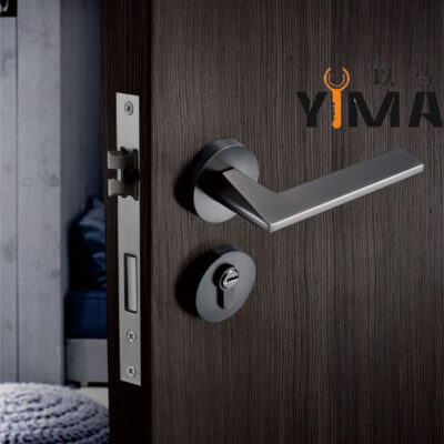Xám gỗ nhà Khóa cửa trong nhà hút từ tính không ồn chia Khóa cửa phòng ngủ tay nắm khóa phần cứng bán buôn. Khóa cửa nhập khẩu theo yêu cầu.