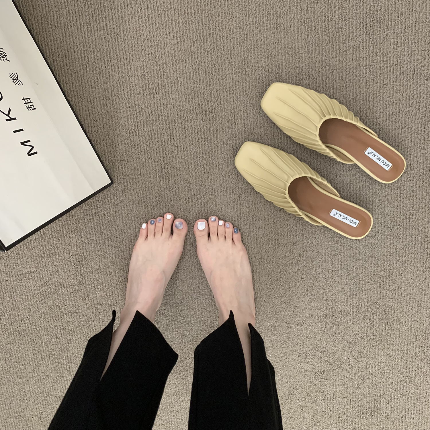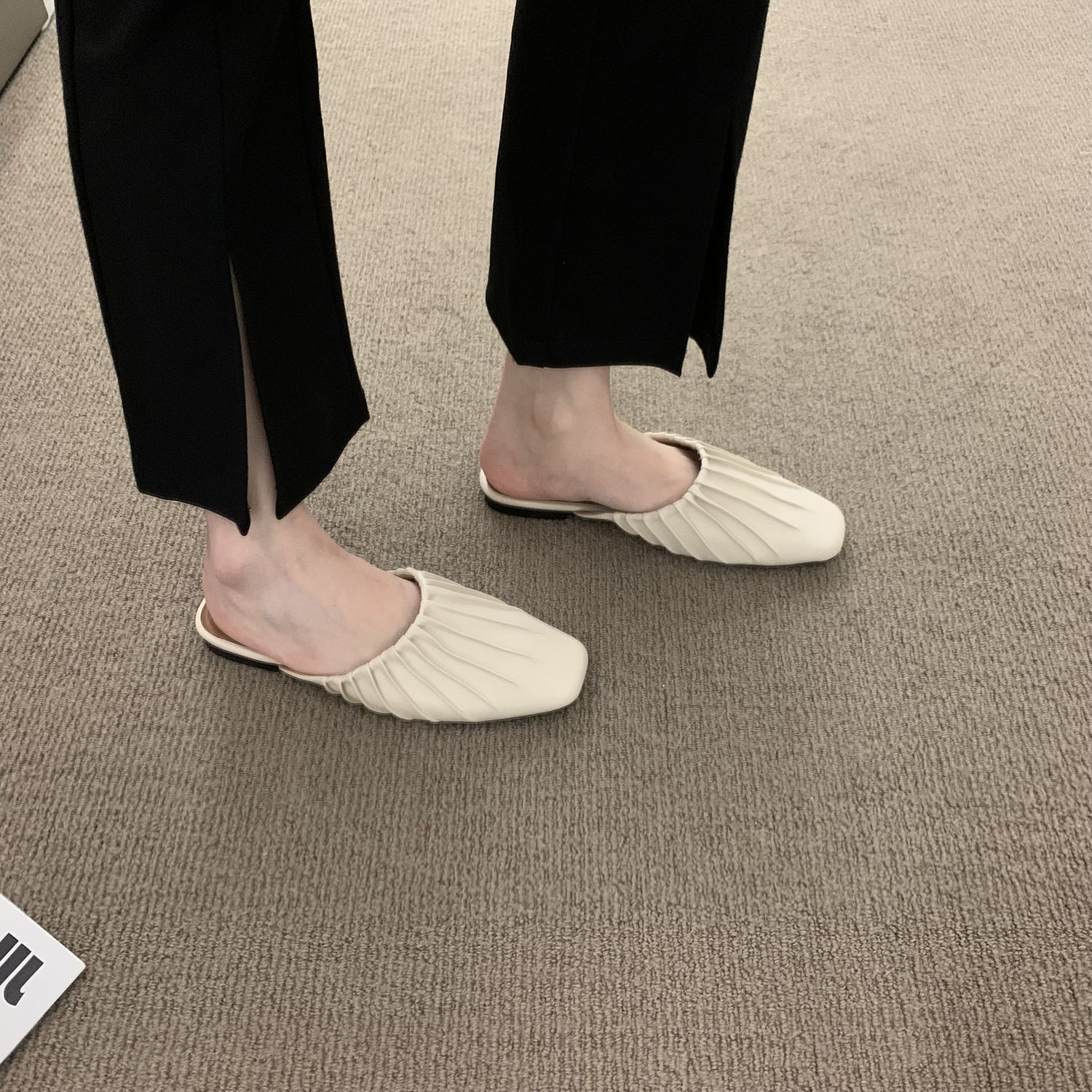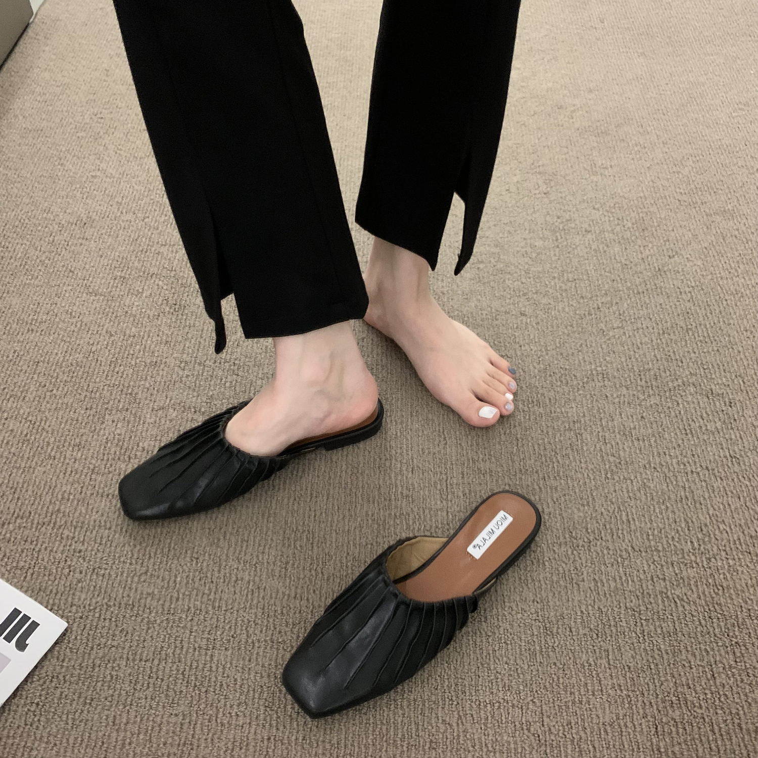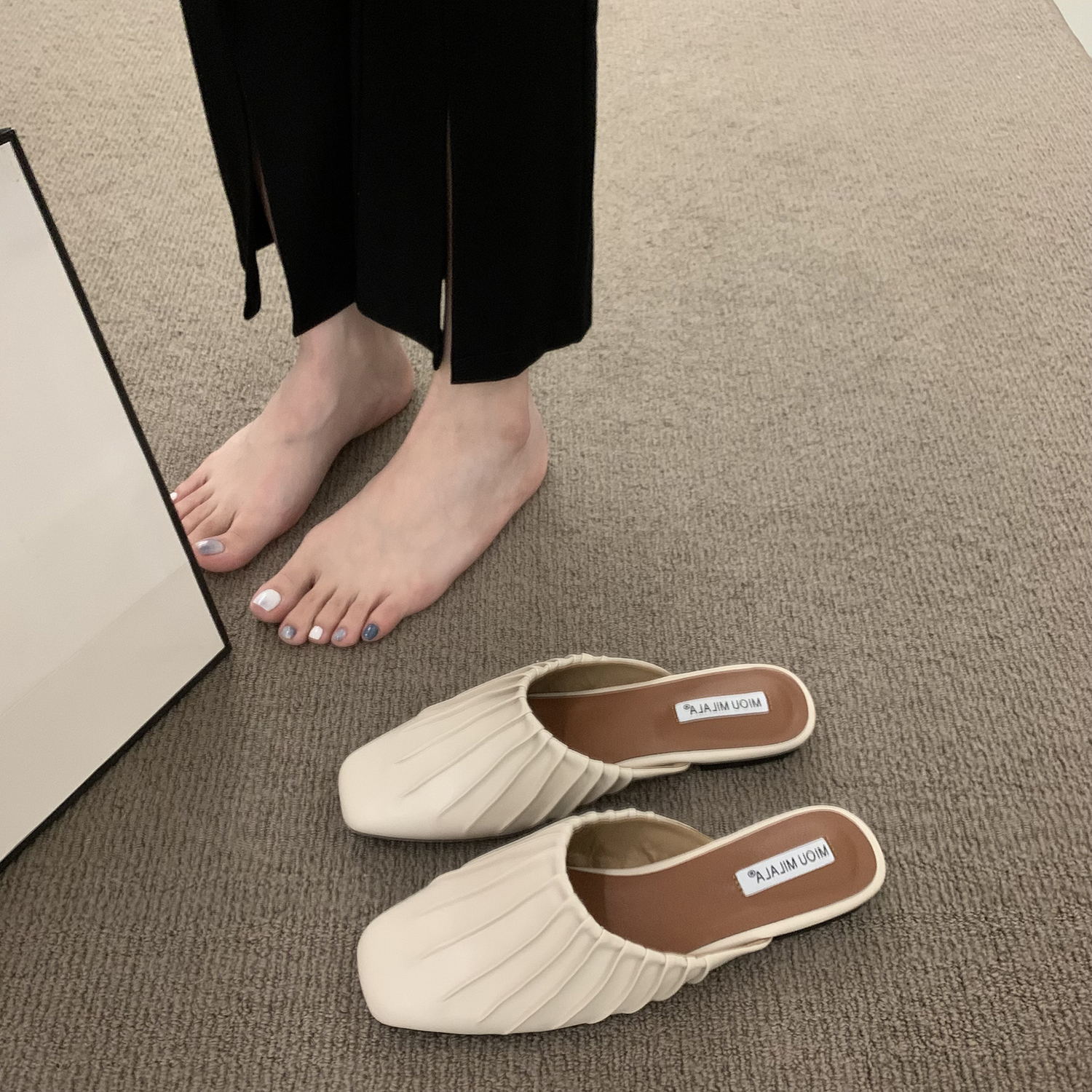 Xăng đan dạ hội đế bệt Giày đơn phong cách Pháp Giày nữ 2023 mới mùa xuân và mùa hè bên ngoài Giày lười nửa kéo Bao Đầu