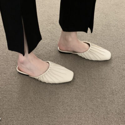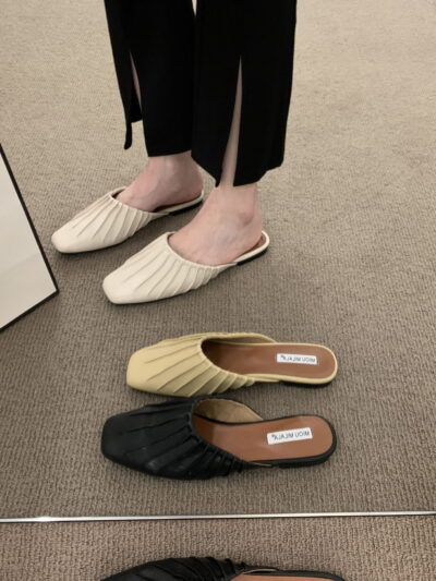 Xăng đan dạ hội đế bệt Giày đơn phong cách Pháp Giày nữ 2023 mới mùa xuân và mùa hè bên ngoài Giày lười nửa kéo Bao Đầu