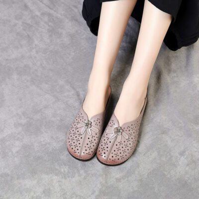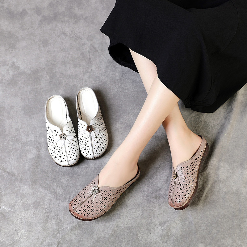 Xăng đan da mẹ và dép đi trong nhà cho phụ nữ mặc ngoài vào mùa hè Dép Bao Đầu đế bằng da có lỗ mới dành cho phụ nữ trung niên và cao tuổi