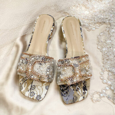 Xăng đan đế dày dép xỏ ngón nữ thời trang mùa hè đế bệt đi chơi Xăng đan nữ kim cương giả xỏ ngón mùa hè mới 2023