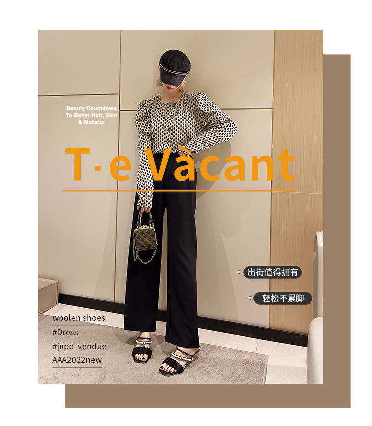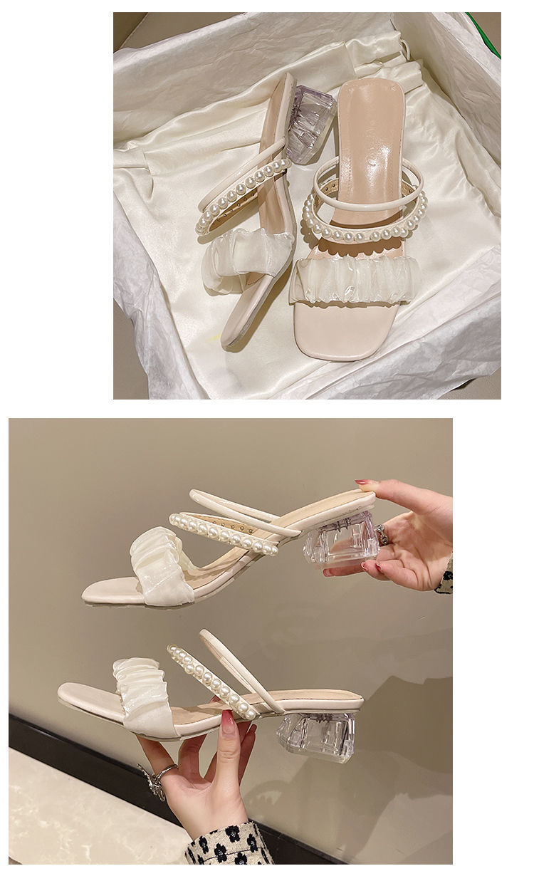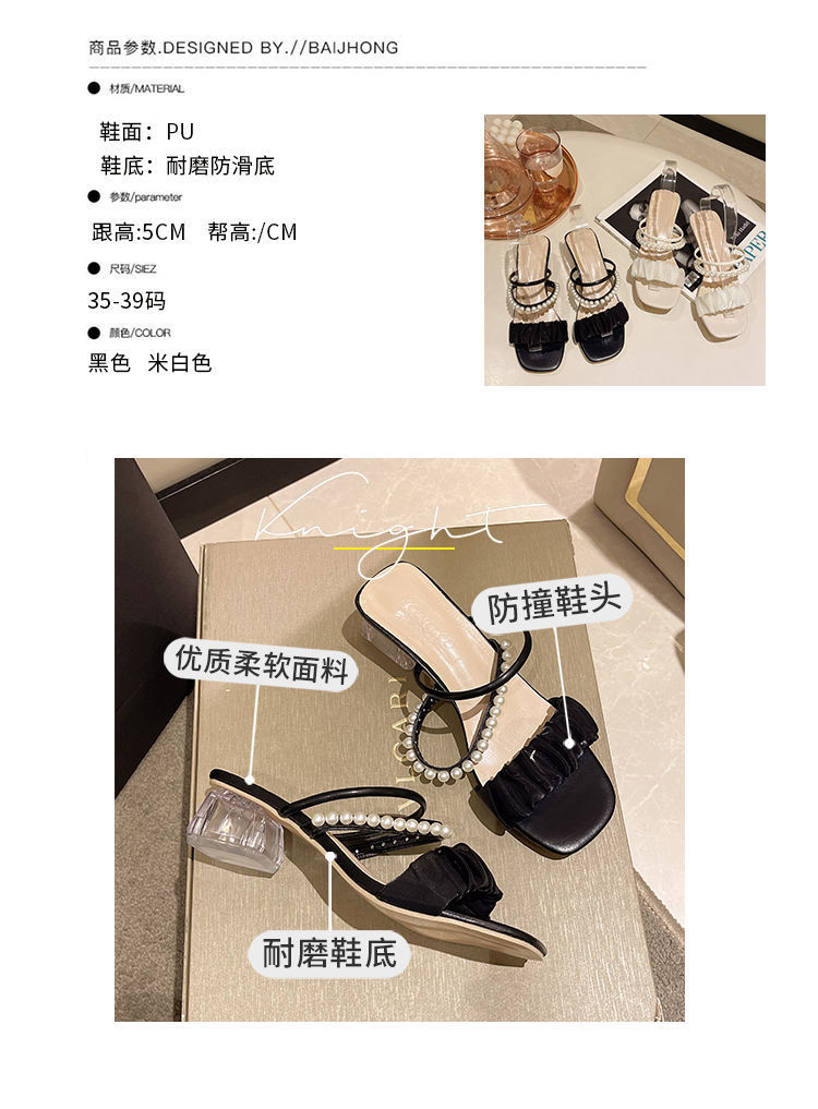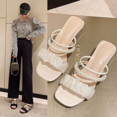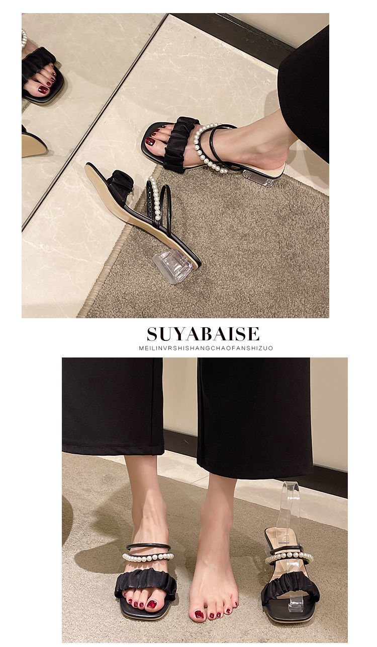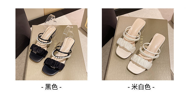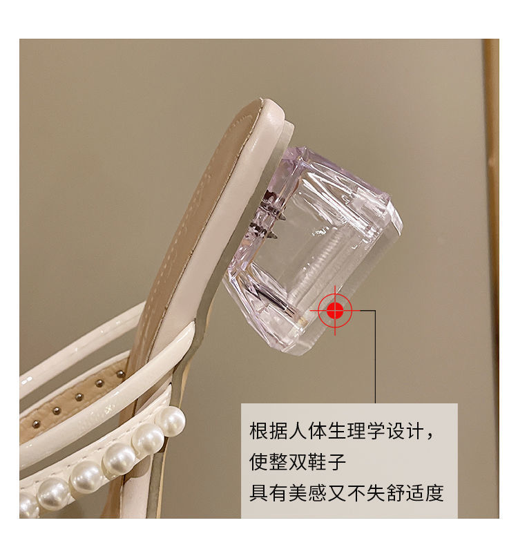 Xăng đan gót dày dép nữ mùa hè mới 2023 kiểu Pháp phù hợp với tất cả các trang phục khoác ngoài phong cách cổ tích ngọc trai hai lần mặc
