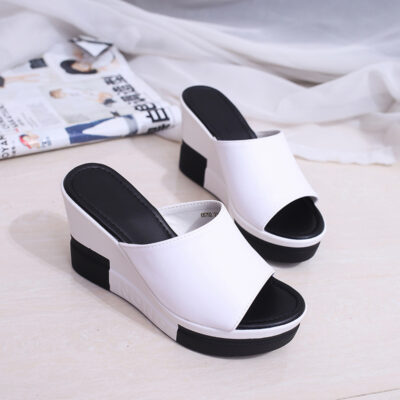 Xăng đan kiểu mới mùa hè 2023 cho nữ đế dày muffin cao gót màu trơn nêm thoải mái từ xăng đan và dép bán buôn ngoại thương