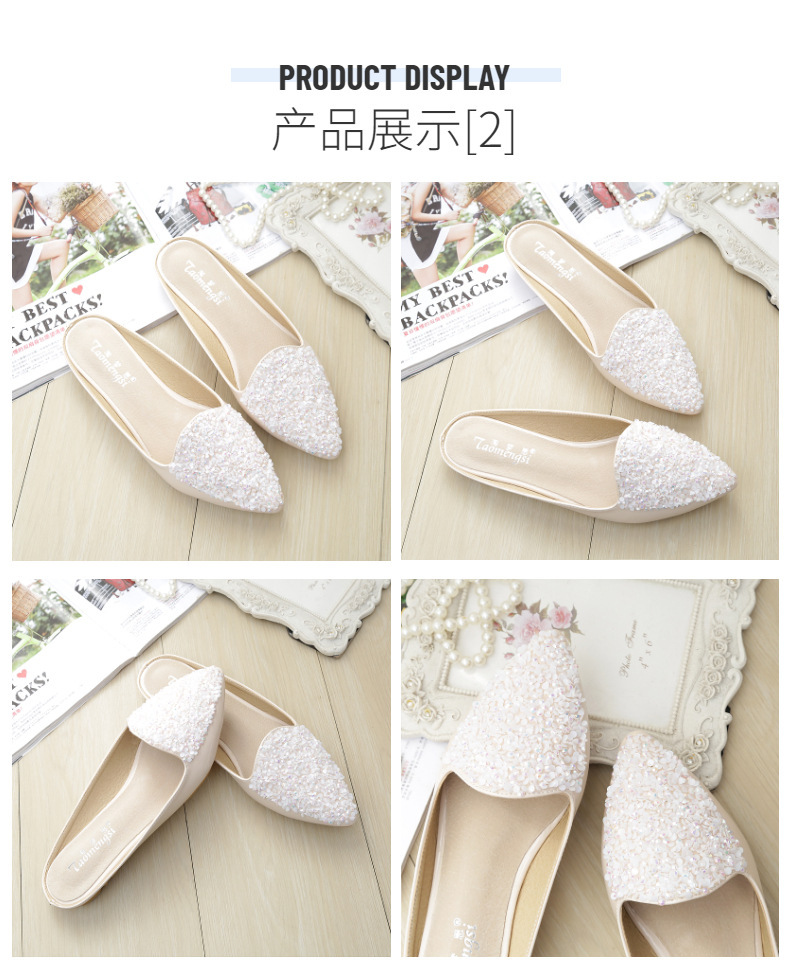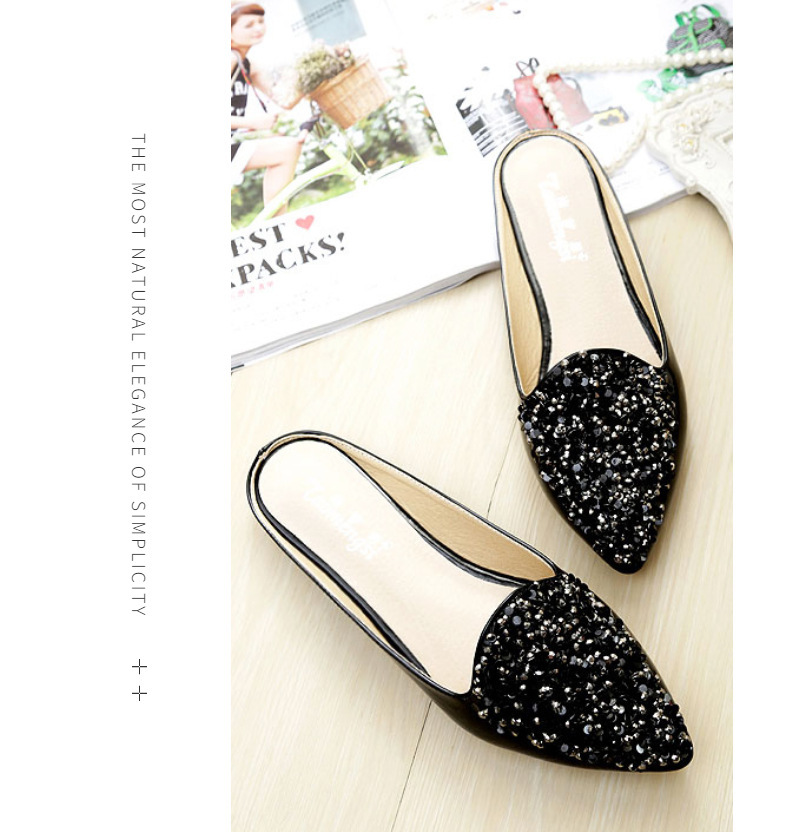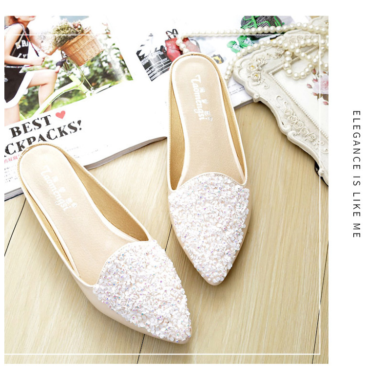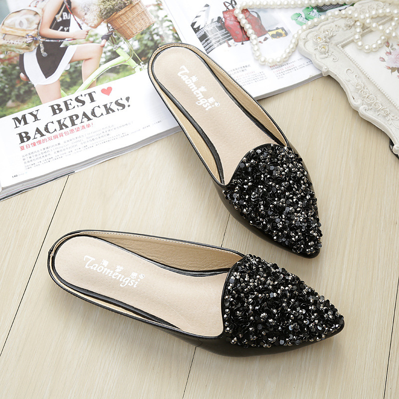 Xăng Đan Nữ 2023 Bao Đầu Bán Dép Nữ Mùa Hè Nhọn Kim Cương Giả La Mã Giày Sandal Đế Bằng Đế Mềm Đậu Hà Lan Giày