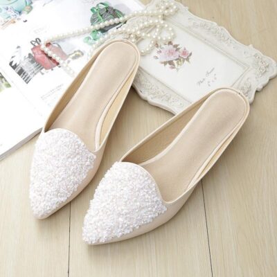 Xăng Đan Nữ 2023 Bao Đầu Bán Dép Nữ Mùa Hè Nhọn Kim Cương Giả La Mã Giày Sandal Đế Bằng Đế Mềm Đậu Hà Lan Giày