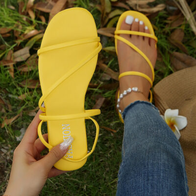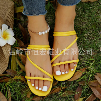 Xăng đan nữ ngoại thương mùa hè mới đơn giản quai mỏng cỡ lớn dép quai ngang thời trang màu đen đế bằng nữ 42