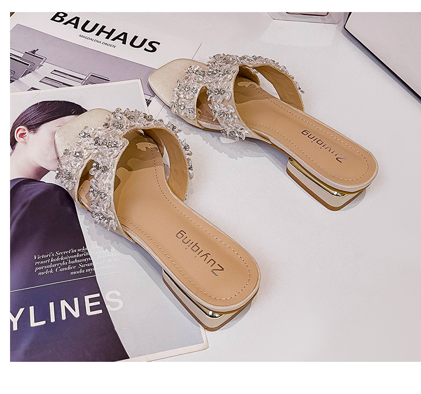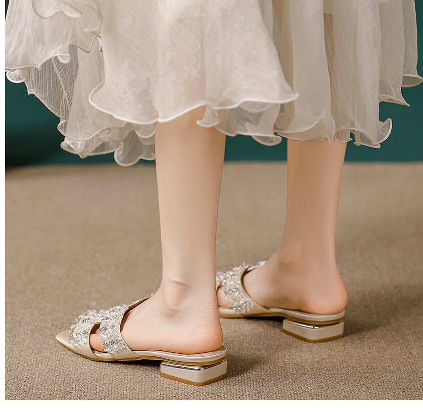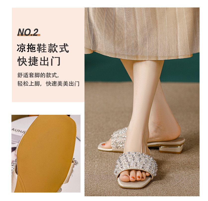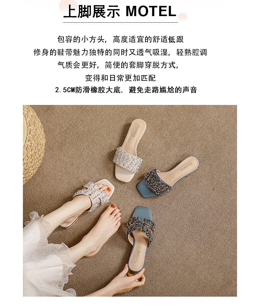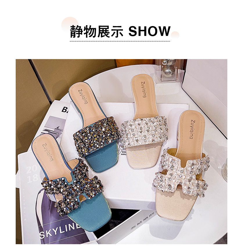 Xăng đan và dép đi trong nhà cho nữ đế dày đính hạt kim cương giày đi biển dành cho người béo chân rộng dép nữ size lớn 41-43 phong cách mùa hè