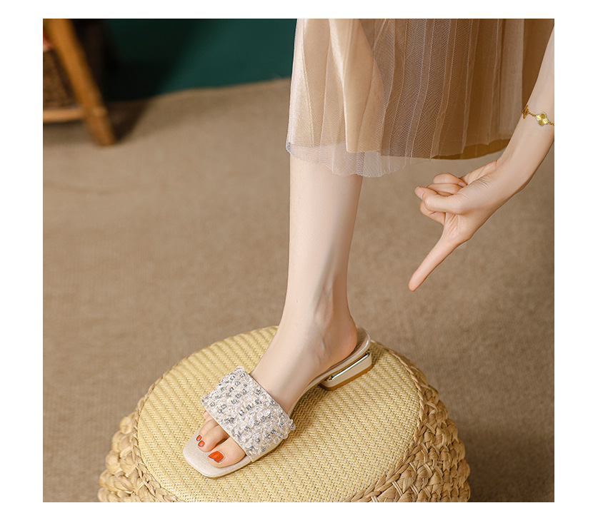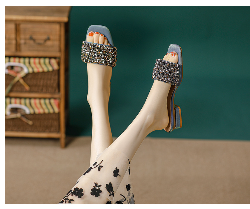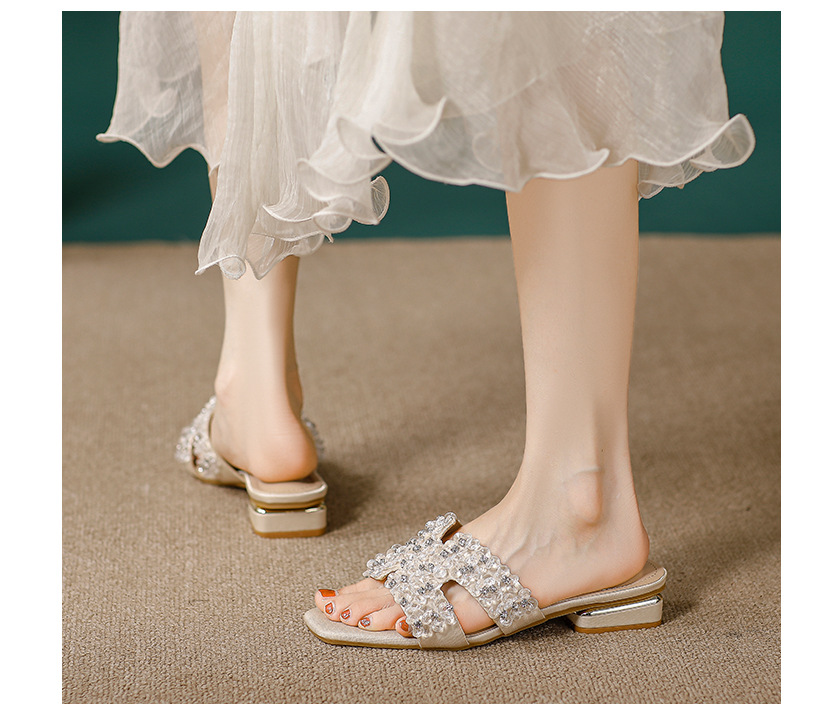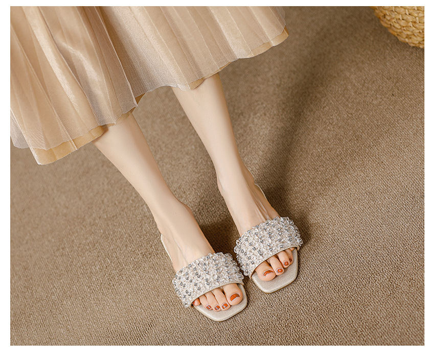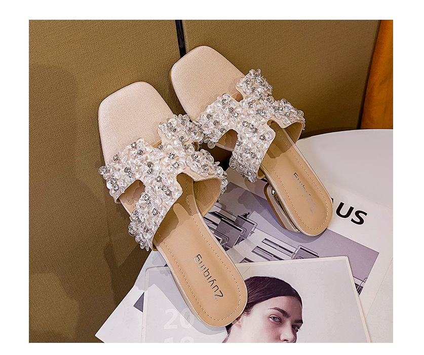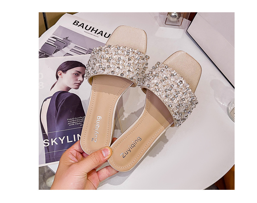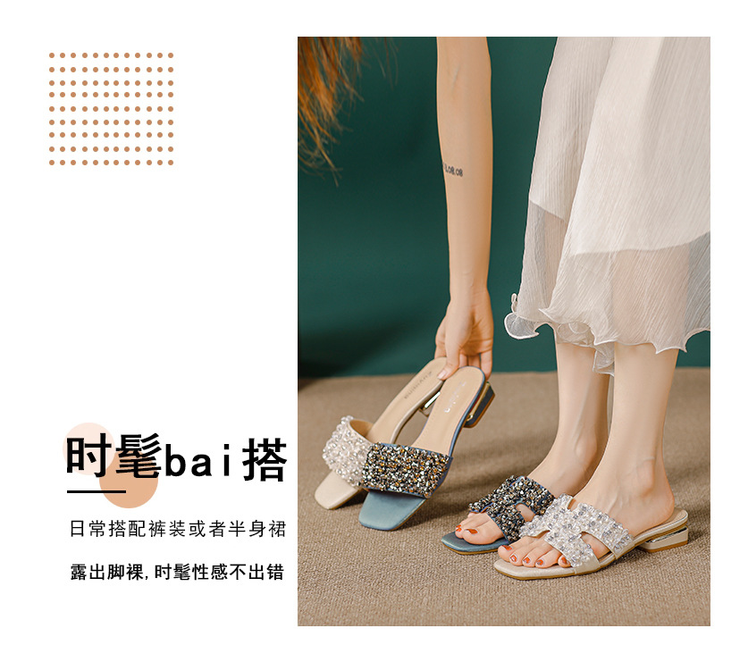 Xăng đan và dép đi trong nhà cho nữ đế dày đính hạt kim cương giày đi biển dành cho người béo chân rộng dép nữ size lớn 41-43 phong cách mùa hè