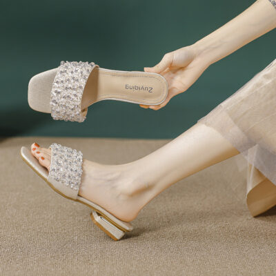 Xăng đan và dép đi trong nhà cho nữ đế dày đính hạt kim cương giày đi biển dành cho người béo chân rộng dép nữ size lớn 41-43 phong cách mùa hè