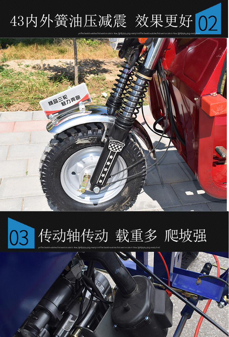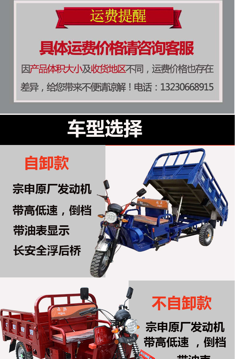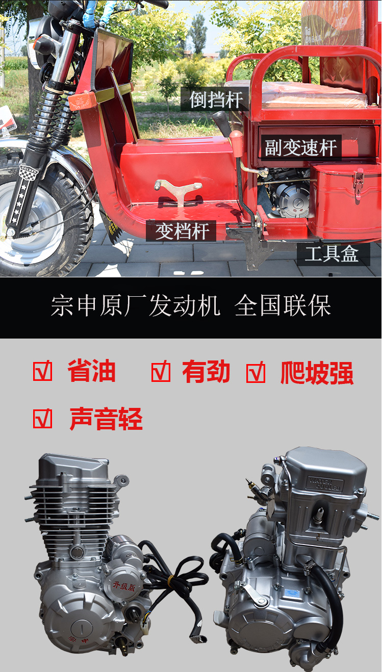 Xăng mới Zongshen điện xe máy ba bánh nhiên liệu hộ gia đình hỗ trợ tự bốc dỡ hàng hóa nông nghiệp tải ba bánh vua