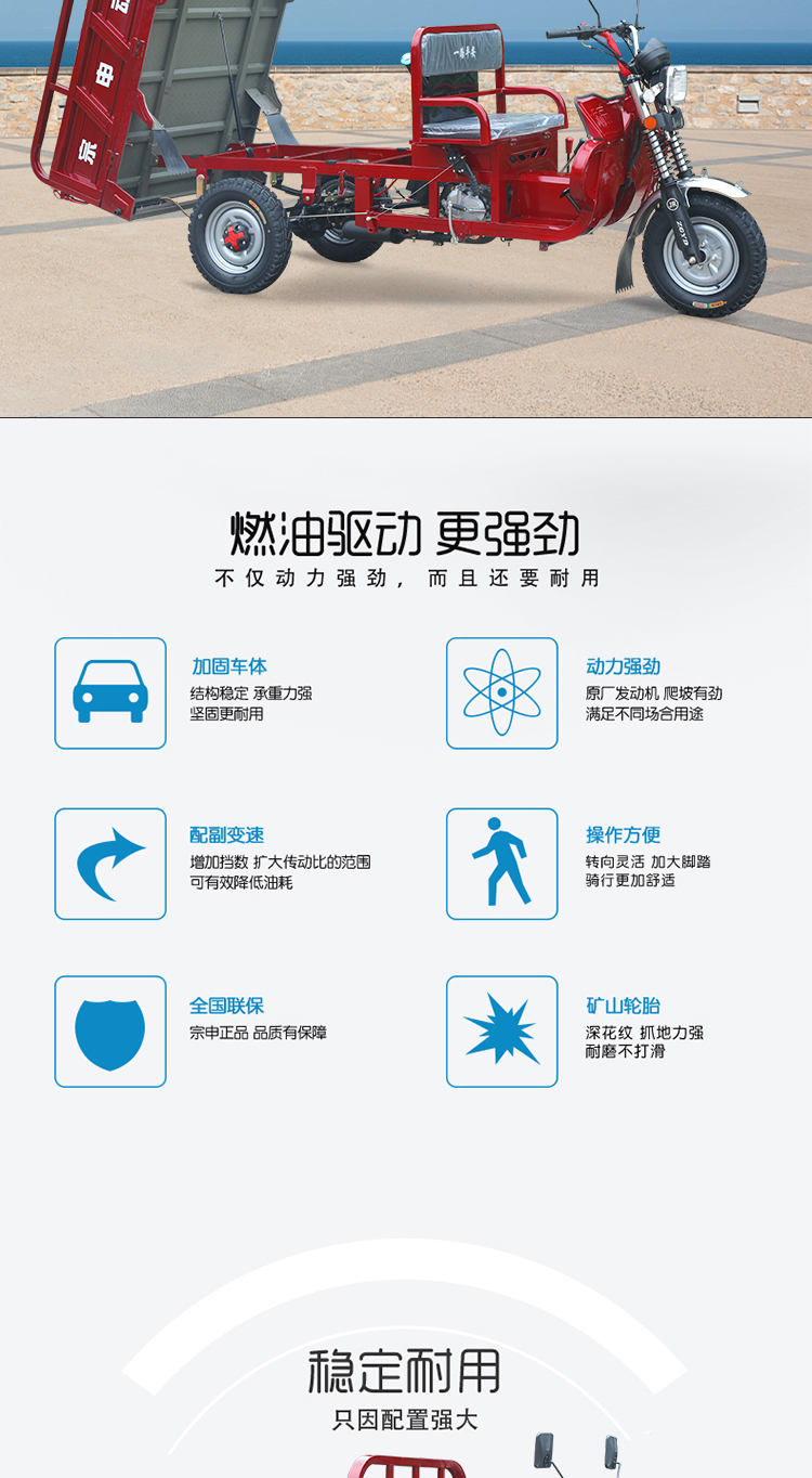 Xăng xe máy ba bánh vận chuyển hàng hóa nông nghiệp mới Zongshen năng lượng nhiên liệu tự dỡ hàng nặng king scooter ba bánh