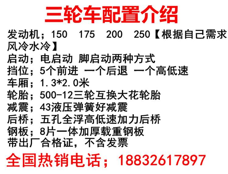 Xăng xe mô tô ba bánh Loncin 300 mô tô năm bánh mới chở hàng nông nghiệp ba bánh tự dỡ hàng nặng vua