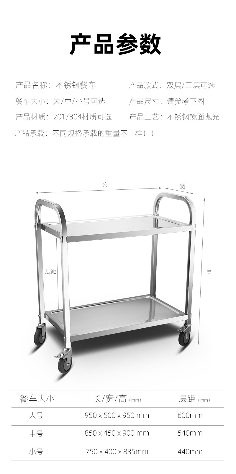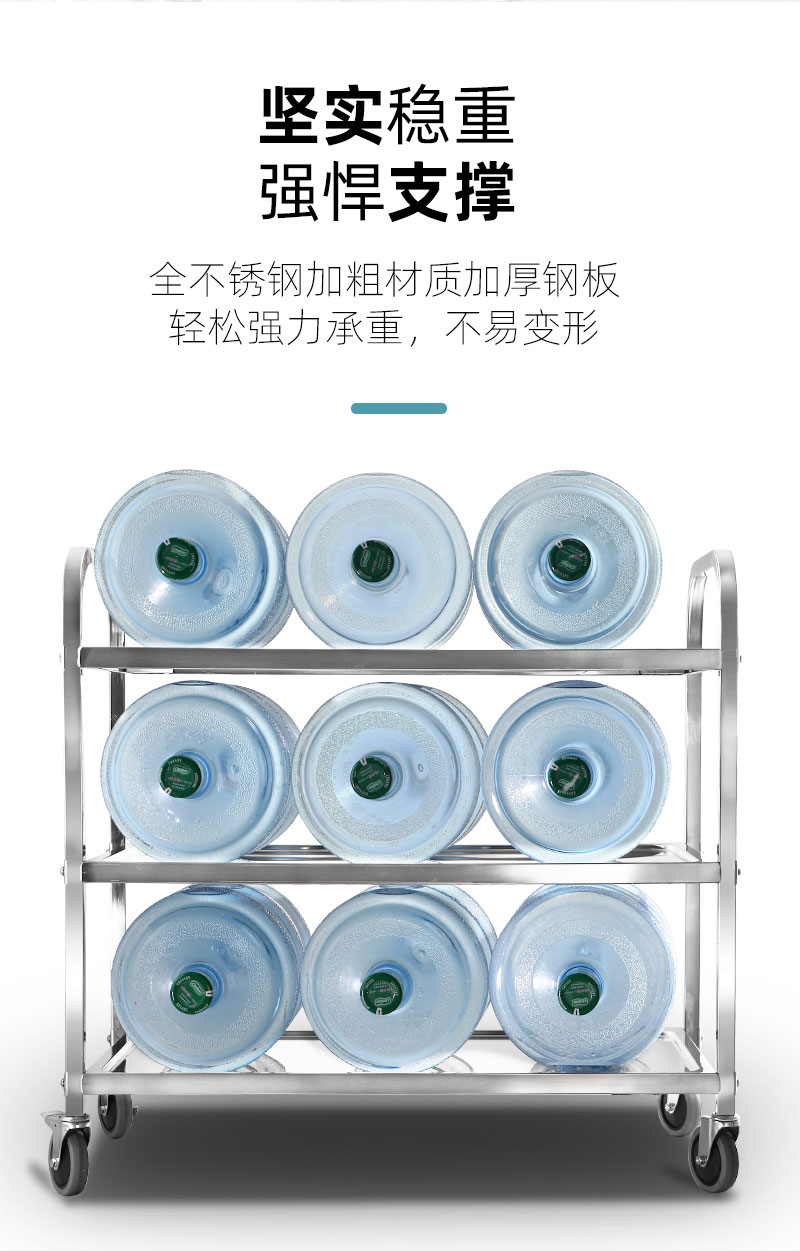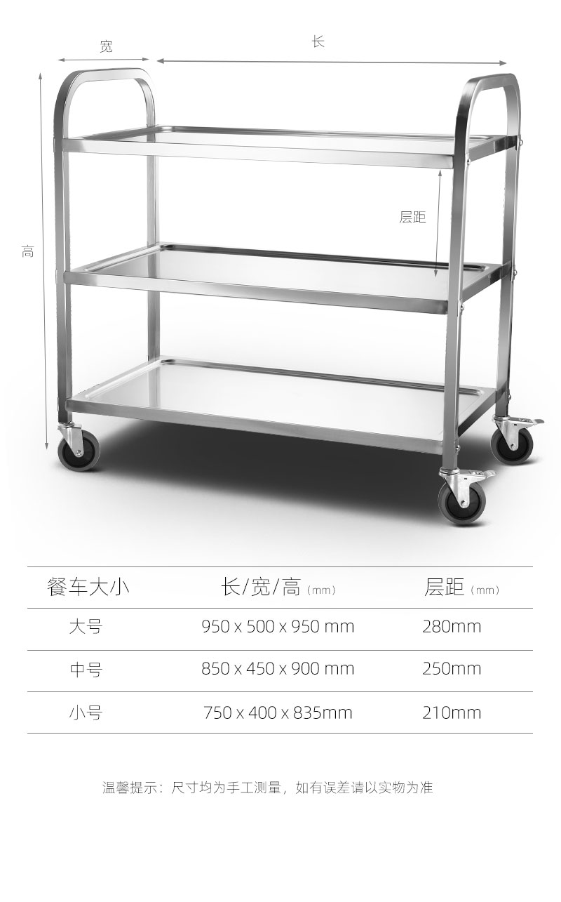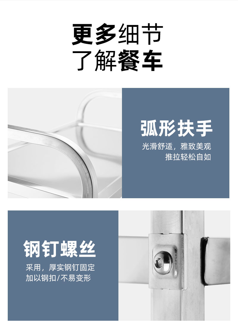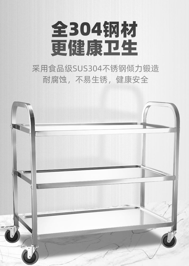 Xe ăn bằng thép không gỉ dày dặn xe đẩy ba tầng xe ăn thương mại xe nhận tô xe nhà hàng xe giao đồ ăn khách sạn phục vụ xe