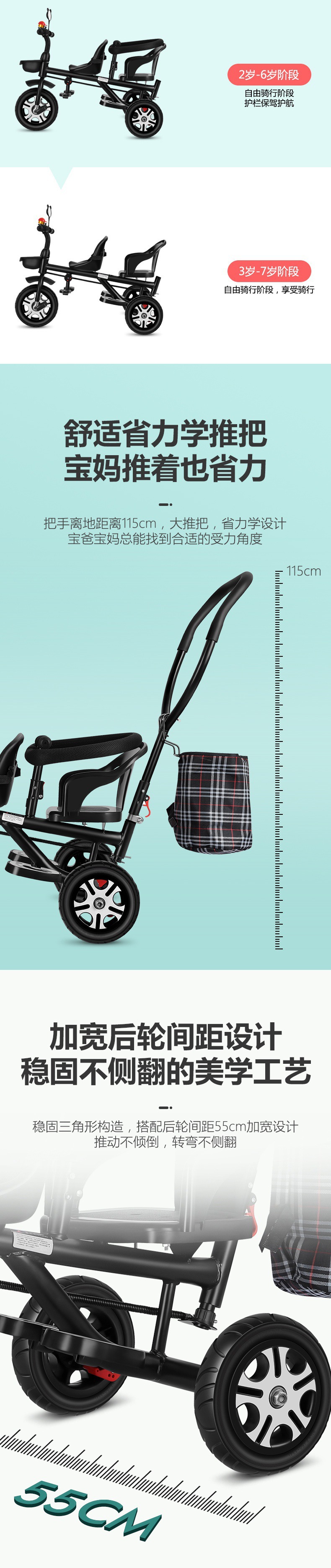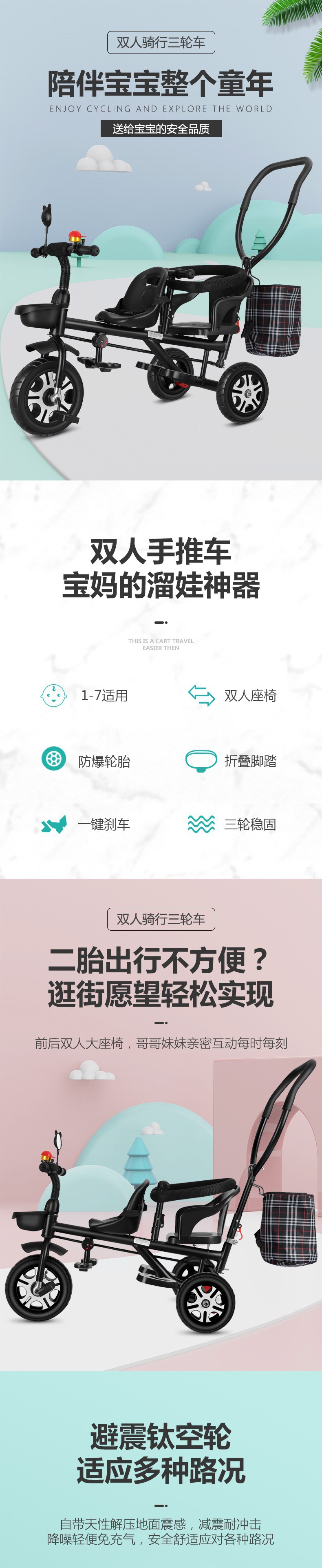 Xe ba bánh đôi trẻ em xe đạp đôi trẻ em 1-7 tuổi xe đẩy trẻ em lớn