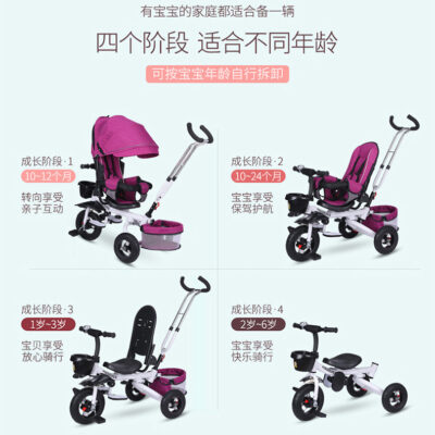 Xe ba bánh trẻ em 1-3-6 xe đẩy em bé xe đạp gấp có thể nằm xe đẩy em bé xe đạp ba bánh